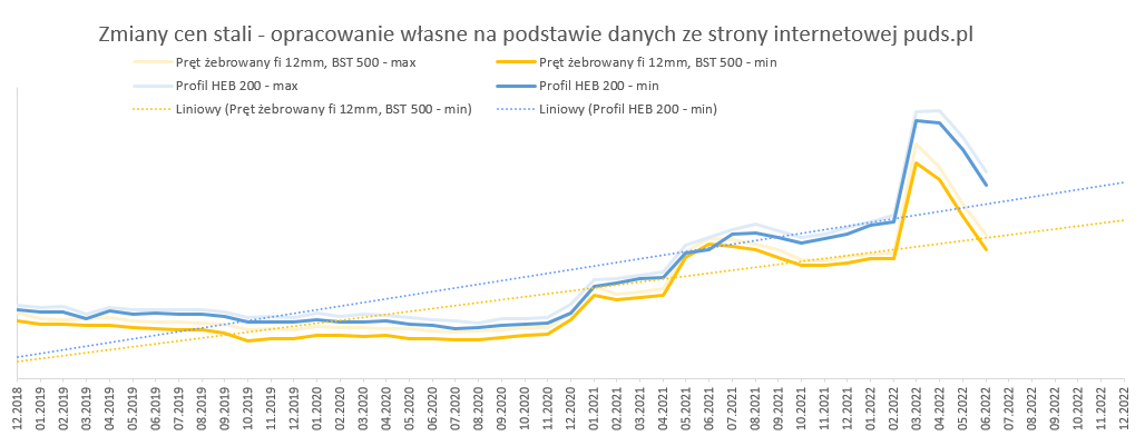 Sprawdziliśmy wskaźniki waloryzacyjne GUS w kontekście najnowszych danych rynkowych. Kolejny miesiąc obserwujemy dynamiczny spadek cen stali. W przypadku cen paliw i asfaltów widoczny jest natomiast trend wzrostowy.