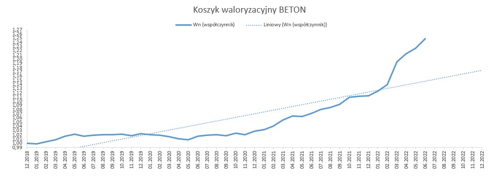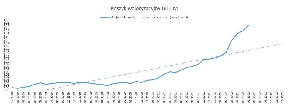Od stycznia 2019 r. do czerwca 2022 r., w oparciu o dostępne dane opublikowane przez GUS, wskaźnik korygujący ceny dla nawierzchni bitumicznej wyniósł 1,2418, natomiast dla nawierzchni betonowej 1,2488. Biorąc pod uwagę rynkowe ceny i dane GUS, należy uznać, że wyliczone w oparciu o mechanizm waloryzacyjny wskaźniki, oddają realny obraz zmian cen na rynku.