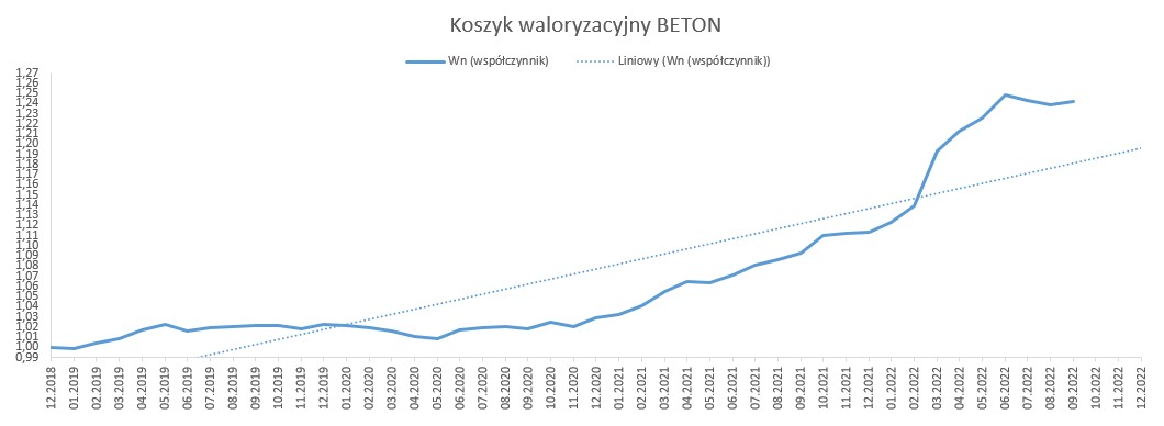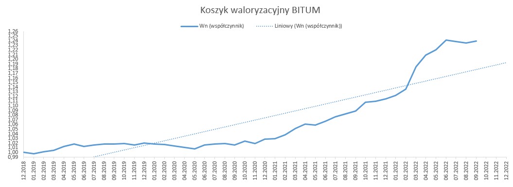 Wskaźniki waloryzacyjne dla obu koszyków (bitum i beton) w wrześniu zanotowały delikatny wzrost (patrz wykresy poniżej).