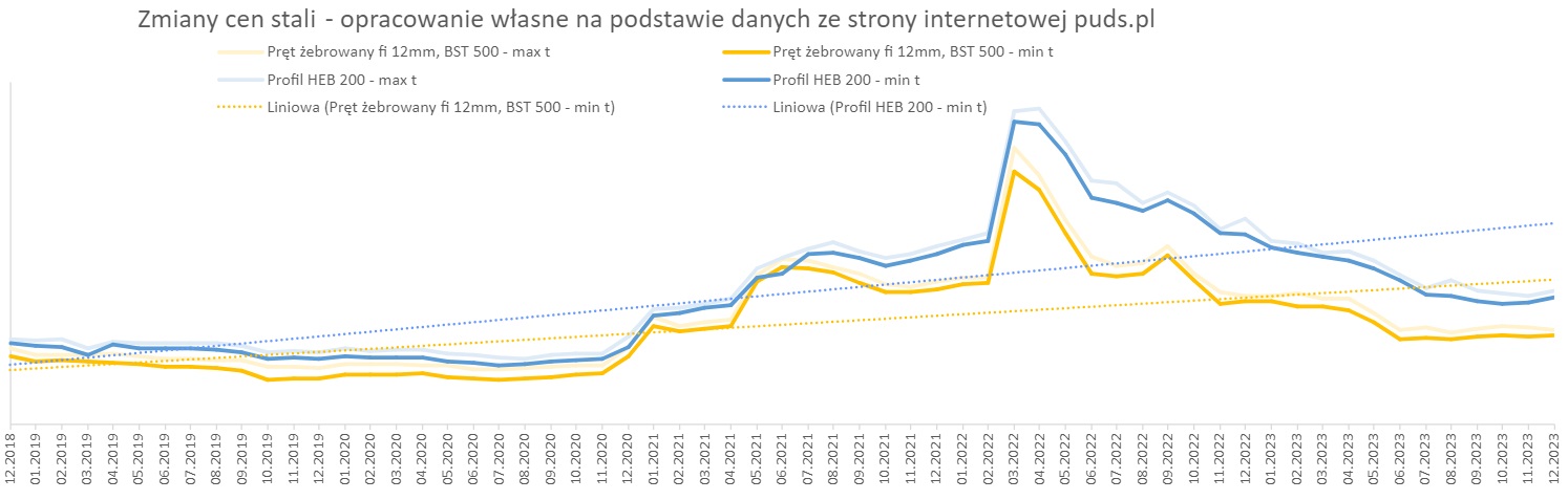 Sprawdziliśmy wskaźniki waloryzacyjne GUS w kontekście najnowszych danych rynkowych. W przypadku cen stali w grudniu 2023 r. nie odnotowano większych zmian w stosunku do poprzedniego miesiąca. W przypadku cen asfaltów utrzymuje się tendencja spadkowa. Ceny paliw również odnotowały spadki.