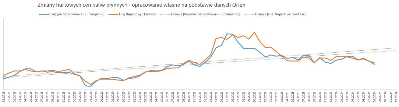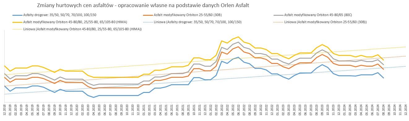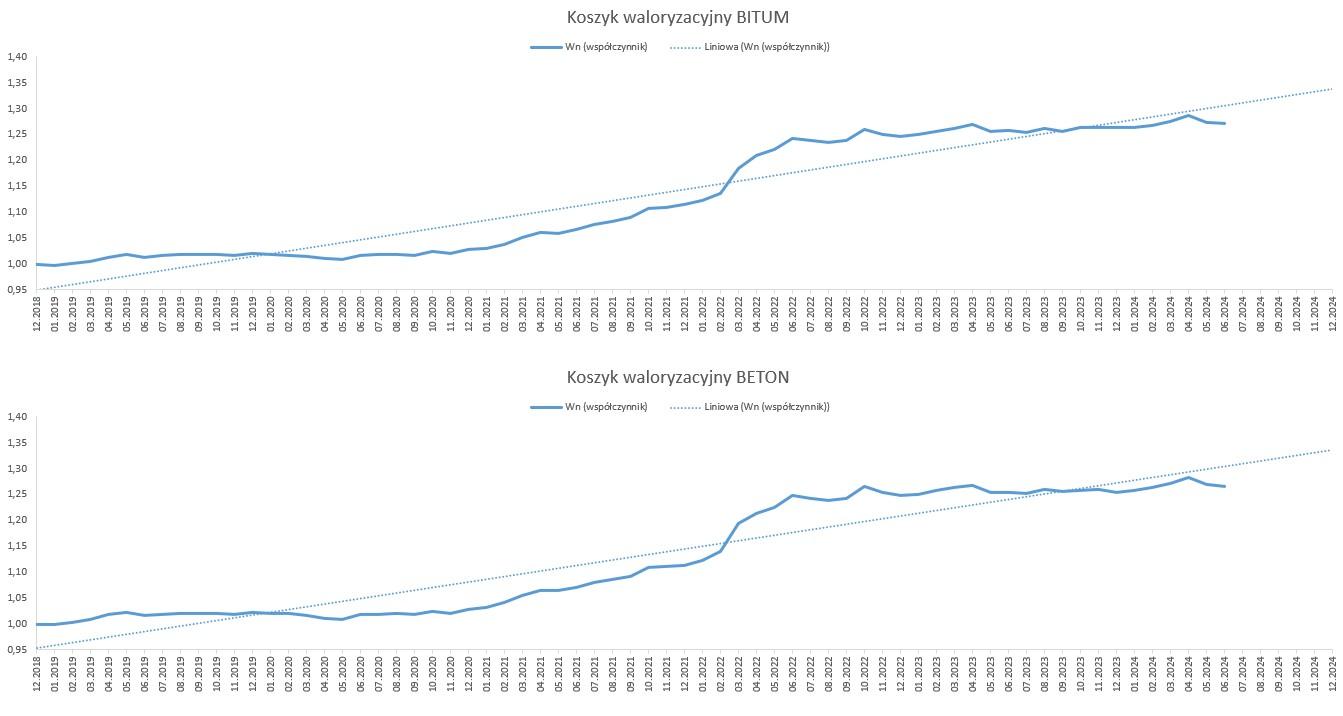 Od stycznia 2019 r. do czerwca 2024 r., w oparciu o dostępne dane opublikowane przez GUS, wskaźnik korygujący ceny dla nawierzchni bitumicznej wyniósł 1,2706, natomiast dla nawierzchni betonowej 1,2661.