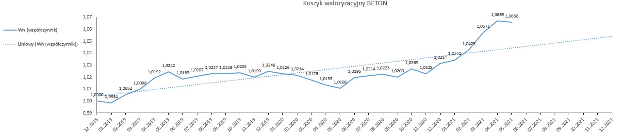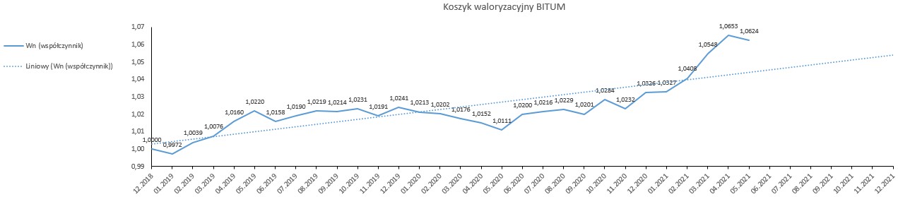 Od stycznia 2019 r. do czerwca 2021 r., w oparciu o dostępne dane opublikowane przez GUS, wskaźnik korygujący ceny dla nawierzchni bitumicznej wyniósł 106,2426, natomiast dla nawierzchni betonowej 106,5793. Biorąc pod uwagę rynkowe ceny i dane GUS, należy uznać, że wyliczone w oparciu o nowy mechanizm waloryzacyjny wskaźniki, oddają realny obraz zmian cen na rynku.