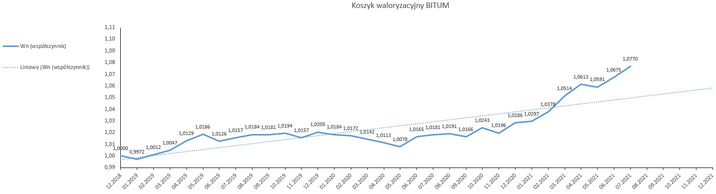 Od stycznia 2019 r. do czerwca 2021 r., w oparciu o dostępne dane opublikowane przez GUS, wskaźnik korygujący ceny dla nawierzchni bitumicznej wyniósł 1,0770, natomiast dla nawierzchni betonowej 1,0809. Biorąc pod uwagę rynkowe ceny i dane GUS, należy uznać, że wyliczone w oparciu o nowy mechanizm waloryzacyjny wskaźniki, oddają realny obraz zmian cen na rynku.