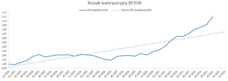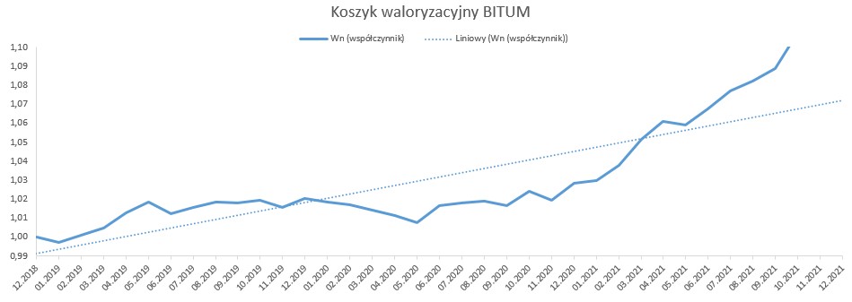 Od stycznia 2019 r. do października 2021 r., w oparciu o dostępne dane opublikowane przez GUS, wskaźnik korygujący ceny dla nawierzchni bitumicznej wyniósł 1,1077, natomiast dla nawierzchni betonowej 1,1100. Biorąc pod uwagę rynkowe ceny i dane GUS, należy uznać, że wyliczone w oparciu o nowy mechanizm waloryzacyjny wskaźniki, oddają realny obraz zmian cen na rynku.