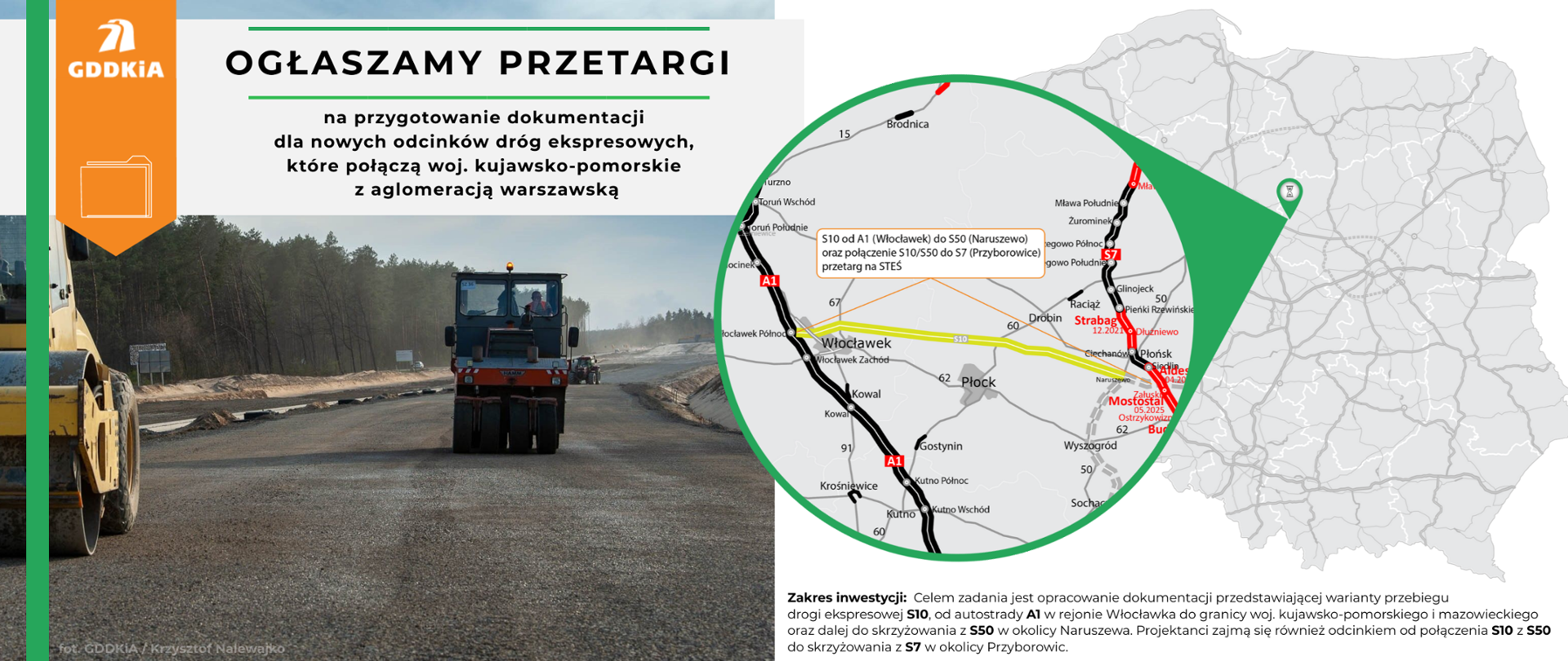 31.12.2021Rusza przetarg na dokumentację dla S10 i fragmentu S50Ogłosiliśmy postępowania przetargowe na opracowanie Studium techniczno-ekonomiczno-środowiskowego wraz uzyskaniem decyzji środowiskowych dla nowych odcinków dróg ekspresowych, które połączą woj. kujawsko-pomorskie z aglomeracją warszawską.