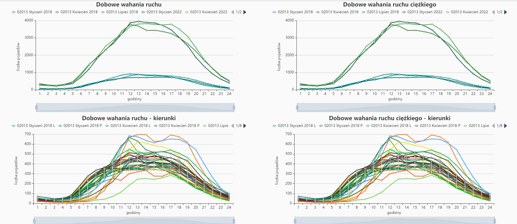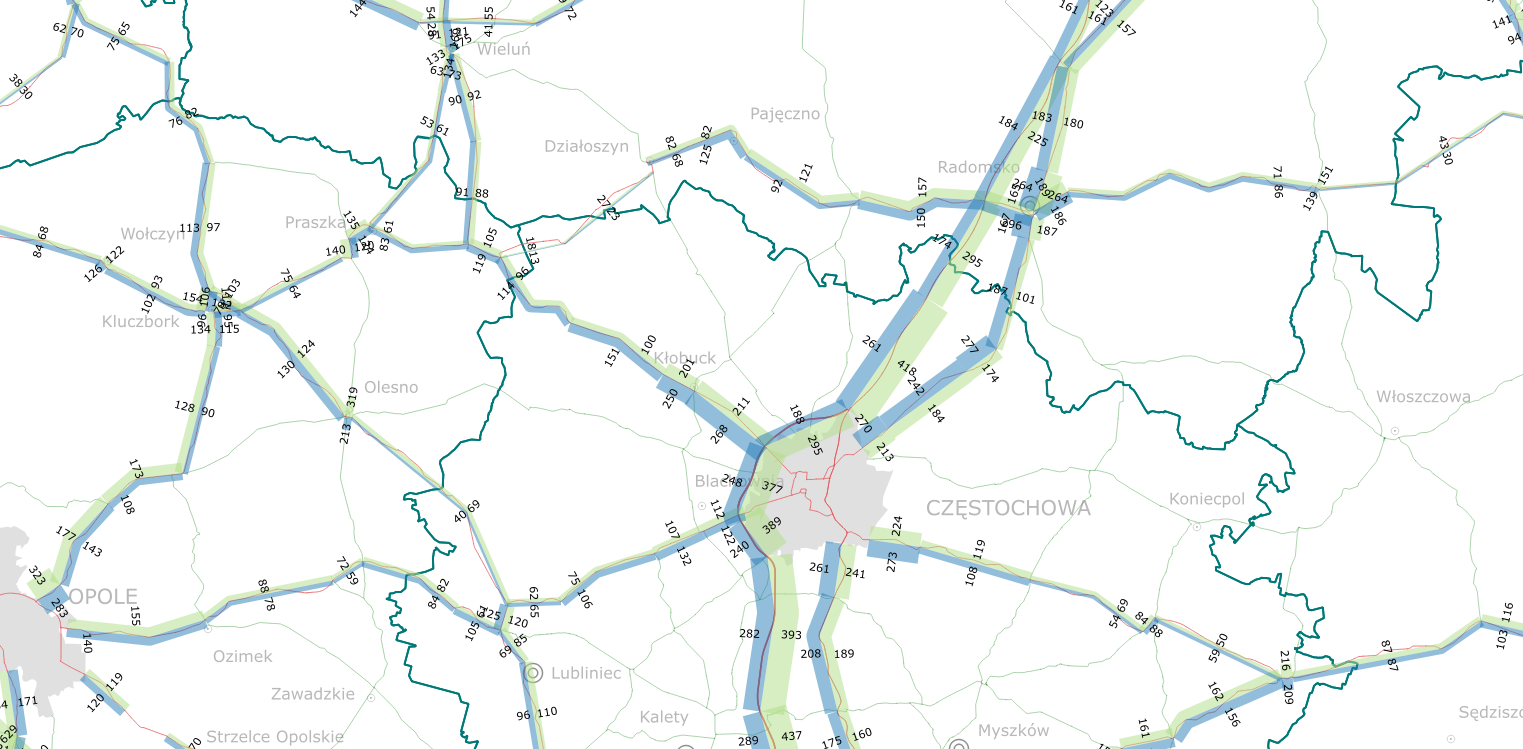 W przypadku dróg wojewódzkich pierwsze pomiary przewidziane są na marzec 2025 r., a liczba dni pomiarowych wynosi 5, 2 lub 1 – w zależności od wielkości natężenia ruchu i znaczenia danego odcinka w sieci.