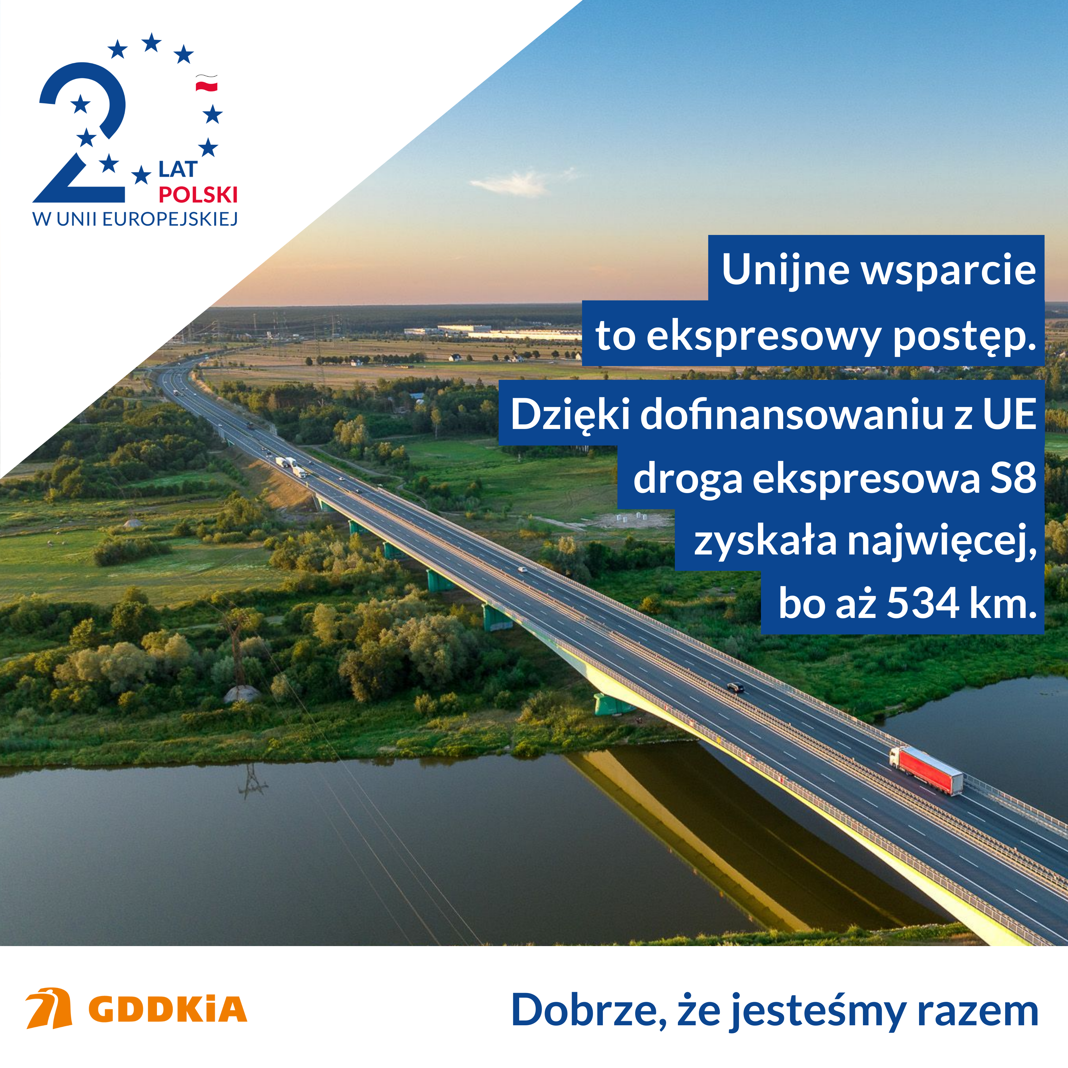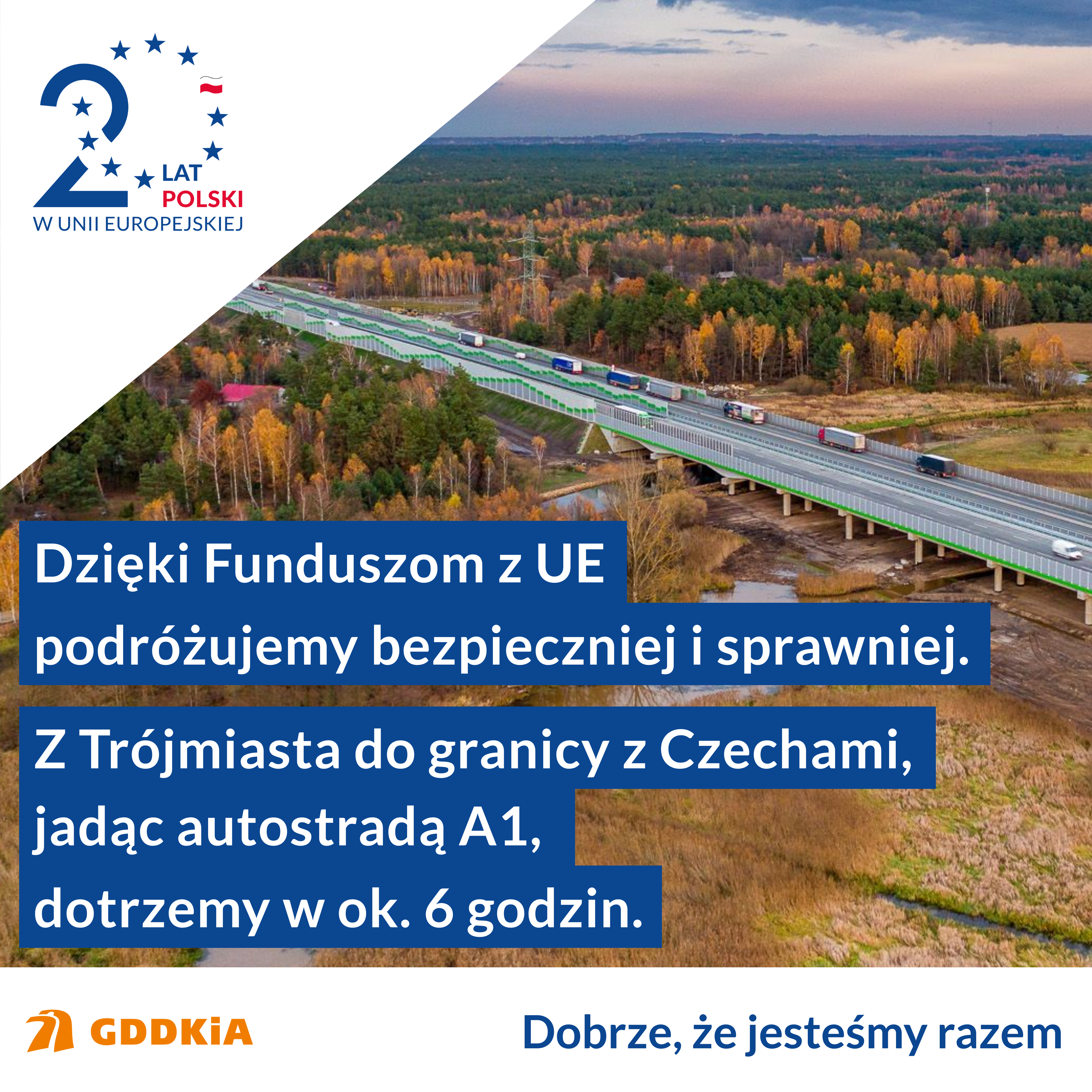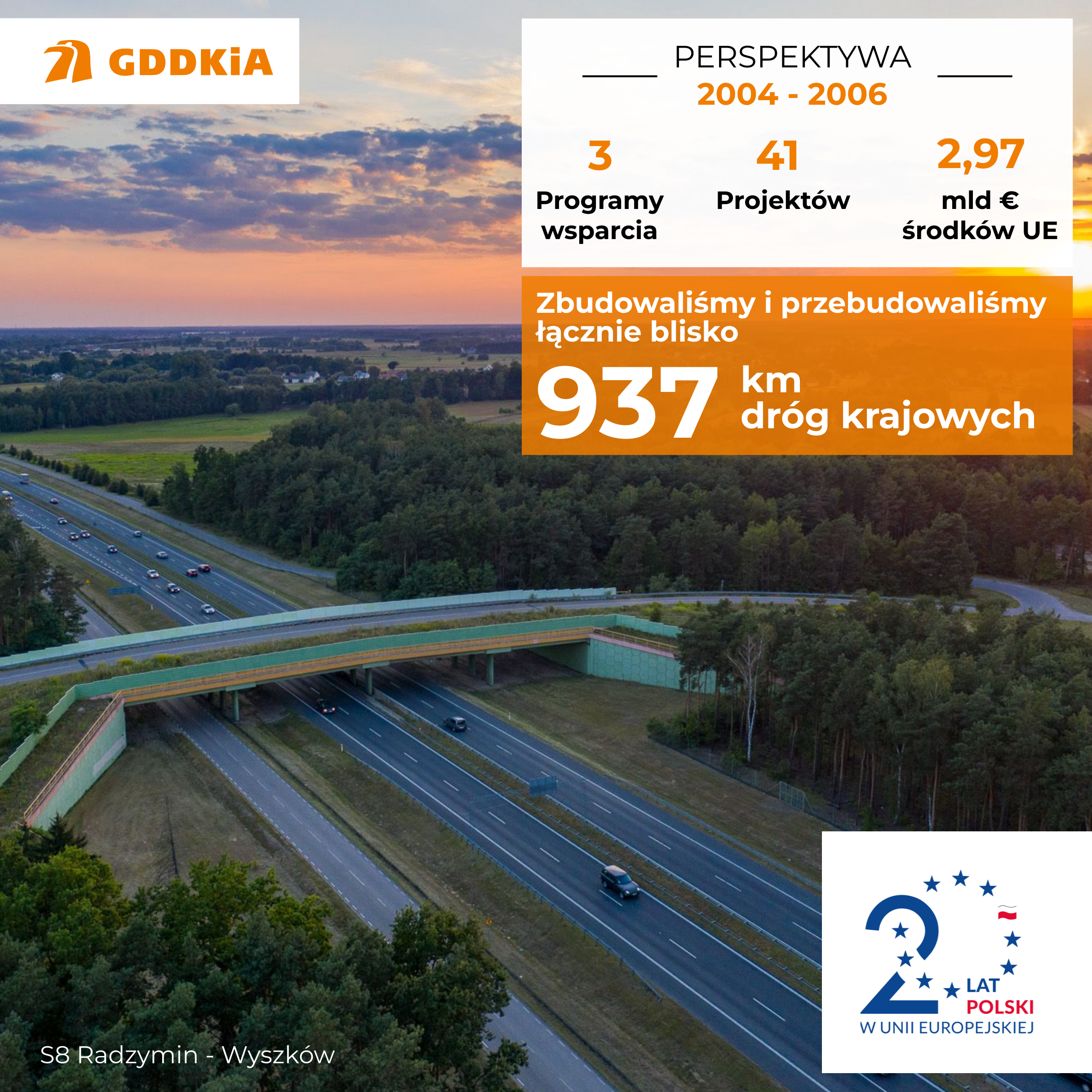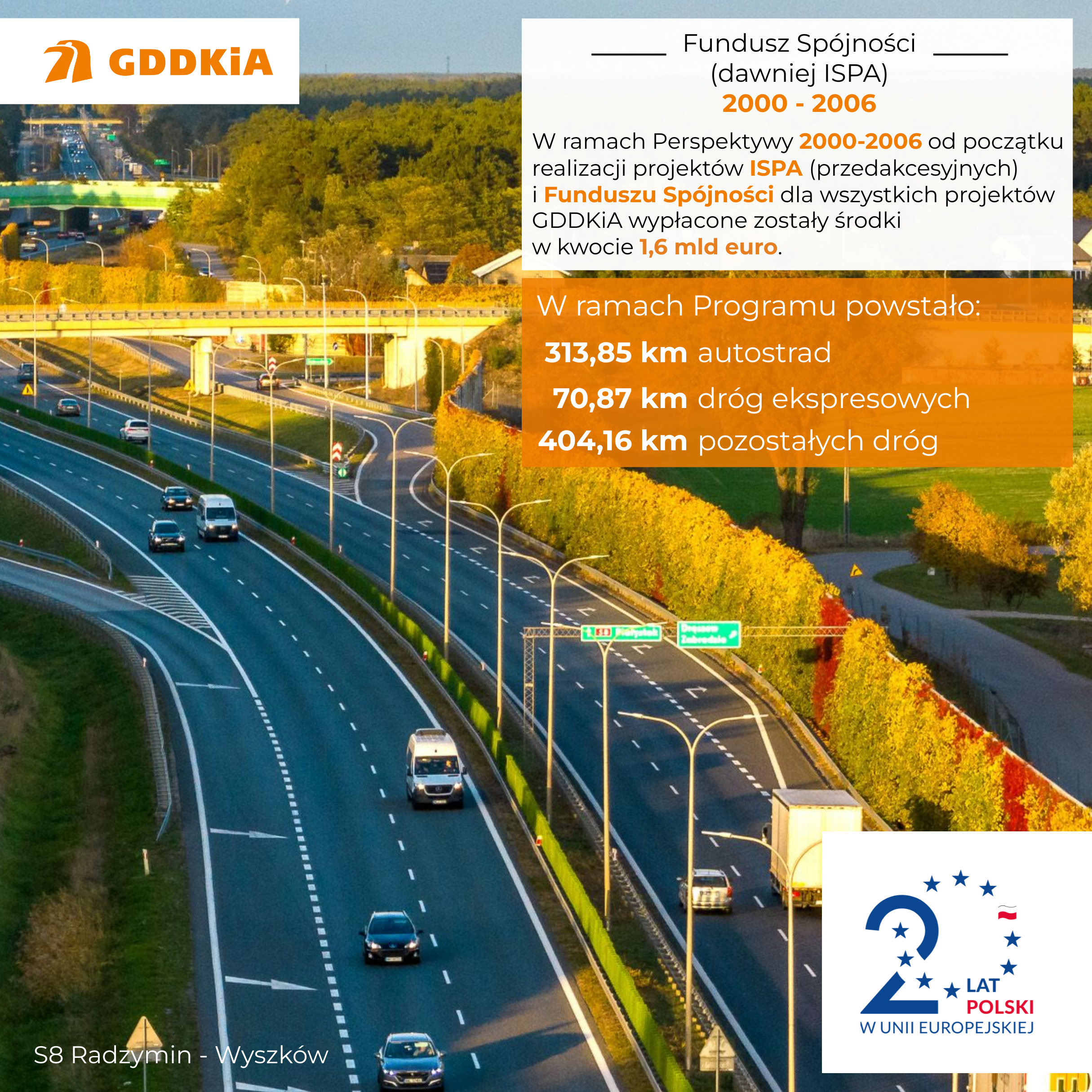 Wchodząc do Unii Europejskiej, 1 maja 2004 r., Polska miała blisko 720 km dróg szybkiego ruchu, a wydłużenie tej sieci po przemianach polityczno-gospodarczych 1989 r. było m.in. zasługą wykorzystania funduszy przedakcesyjnych, pożyczek z Europejskiego Banku Inwestycyjnego lub Banku Światowego, inwestycji krajowych i zawartych umów koncesyjnych. W kolejnych latach Polska stała się największym placem budowy dróg w Europie, a Generalna Dyrekcja Dróg Krajowych i Autostrad skutecznie pozyskiwała i wykorzystywała dostępne fundusze unijne na realizację inwestycji infrastrukturalnych. Obecnie kierowcy mają do dyspozycji ponad siedmiokrotnie dłuższą sieć dróg szybkiego ruchu liczącą 5117,1 km, w tym 1 849,2 km autostrad (ok. 465 km to odcinki koncesyjne) i 3267,9 km dróg ekspresowych. Bez dostępności do funduszy unijnych taki rozwój nie byłby możliwy.