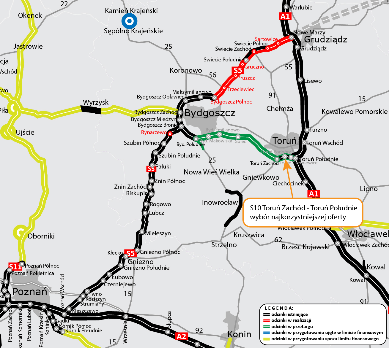 Przetarg dotyczy zaprojektowania i budowy odcinka drogi ekspresowej o długości 11,8 km między węzłem Toruń Zachód a węzłem Toruń Południe. W trakcie budowy powstaną dwa nowe węzły: Toruń Podgórz i Toruń Czerniewice. Budowa skróci i ułatwi dojazd do autostrady A1 dla kierowców jadących z Bydgoszczy, a także ułatwi dostęp do A1 kierowcom z Torunia.