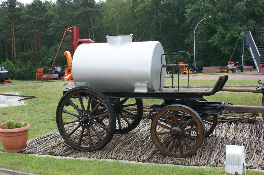 Beczkowóz zazwyczaj o pojemności około 1000 l, służył do podwożenia wody do zasilania kotła walca parowego, a jednocześnie do polewania niektórych wałowanych materiałów: gruntu, podłoża, żwiru lub tłucznia nawierzchni drogowego. Składał się ze zbiornika żelaznego lub drewnianego osadzonego na stosownym podwoziu. Woda wydostawała się na zewnątrz z przytwierdzonej z tyłu rury podziurkowanej. Od beczkowozu wymagano by był zaopatrzony w odpowiedni mechanizm umożliwiający skrapianie przez woźnicę np. poprzez osadzenie korby wentylu przy koźle.