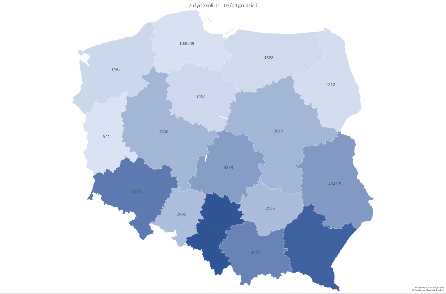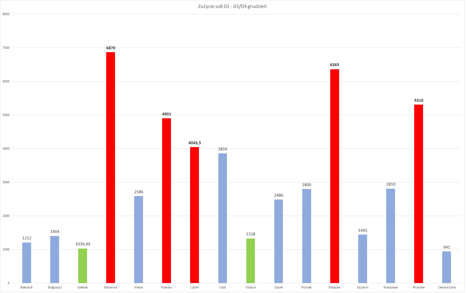 W ramach podjętych działań wykorzystano również 49 390 tys. ton soli drogowej, najwięcej tam, gdzie prowadzone były najintensywniejsze działania z zakresu zimowego utrzymania: woj. śląskie (6870 ton), woj. podkarpackie (6365), woj. dolnośląskie (5310), woj. małopolskie (4901) i woj. lubelskie (4043).