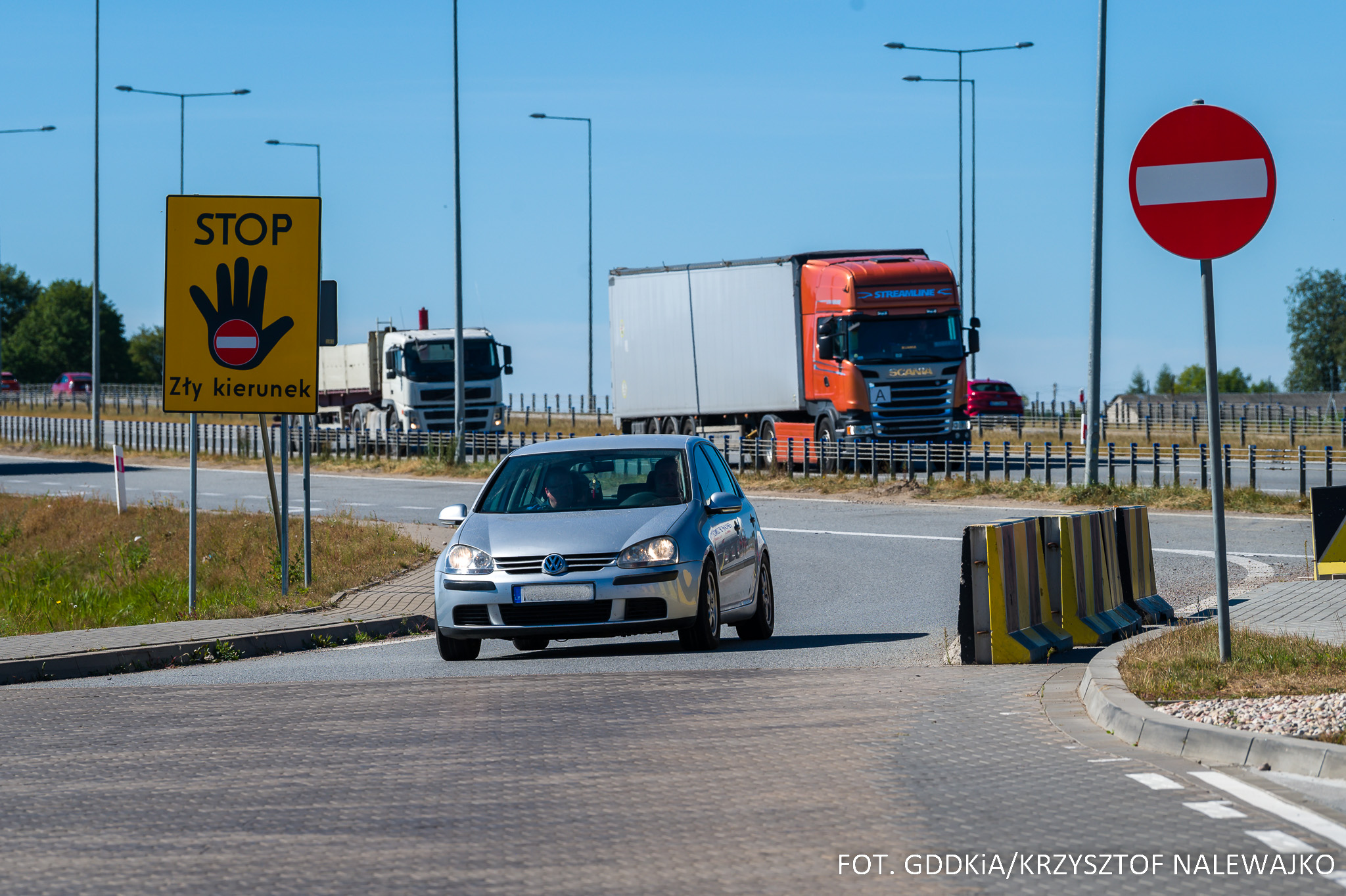 Niestety, wciąż zdarzają się przypadki poruszania się po drogach szybkiego ruchu pod prąd. Mimo stosownego oznakowania i samego układu jezdni, który wymusza prawidłową jazdę, niektórzy kierujący pojazdami łamią przepisy i stwarzają ogromne zagrożenie w ruchu drogowym - dla innych, jak i samych siebie. Jeszcze raz apelujemy o przestrzeganie przepisów i stosowanie się do oznakowania!