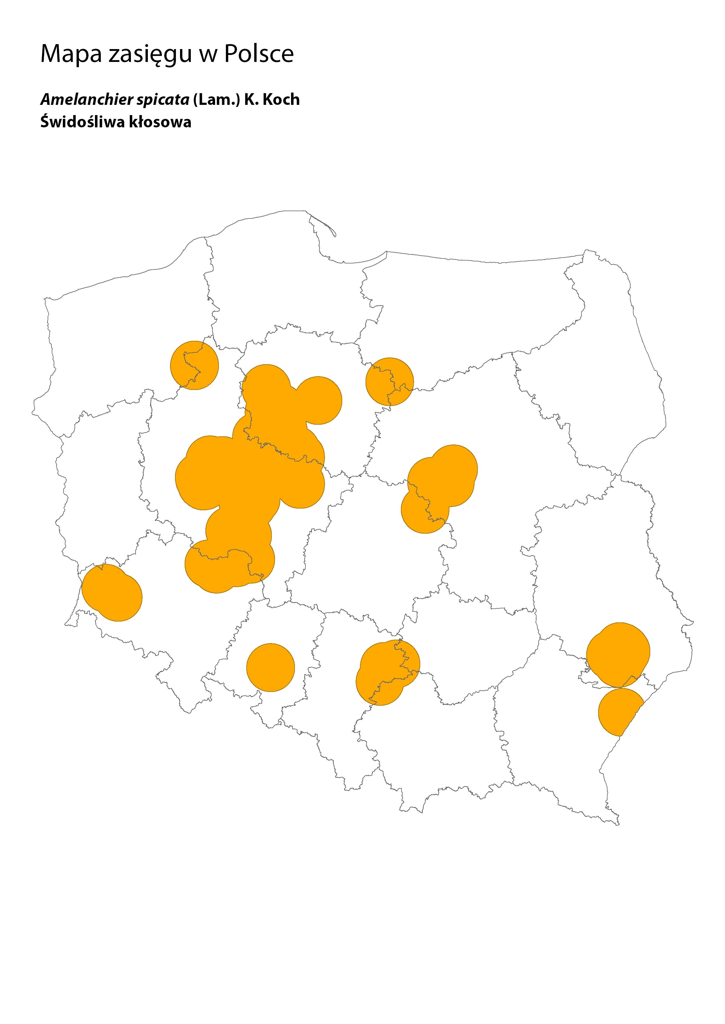 Amelanchier-spicata_swidosliwa-klosowa_EN.pdf 0.76MB Mapa zasięgu w Polsce - Amelanchier spicata
