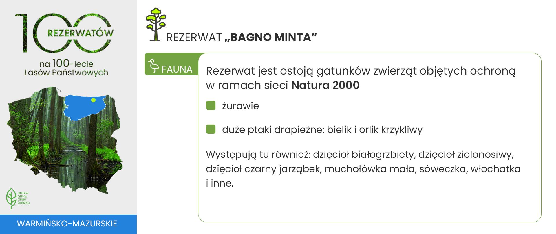 W całym kraju trwają konsultacje społeczne w ramach inicjatywy „100 rezerwatów na 100-lecie Lasów Państwowych”. Jednym z planowanych rezerwatów przyrody w województwie warmińsko-mazurskim jest „Bagno Minta”.
