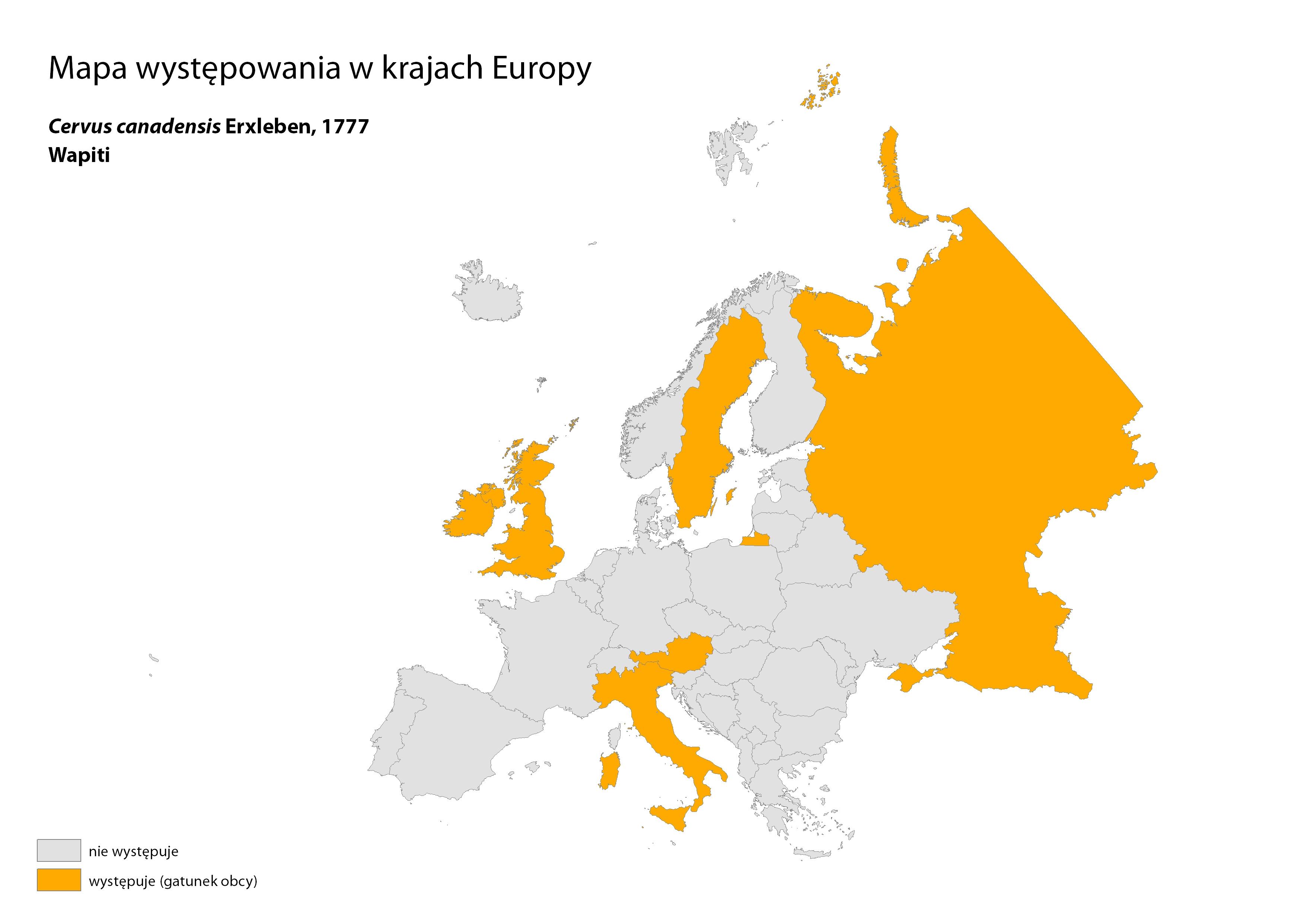 Cervus-canadensis_wapiti_DP.pdf 0.50MB Mapa występowania w krajach Europy - Cervus canadensis