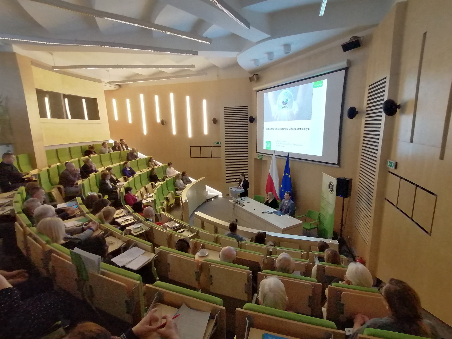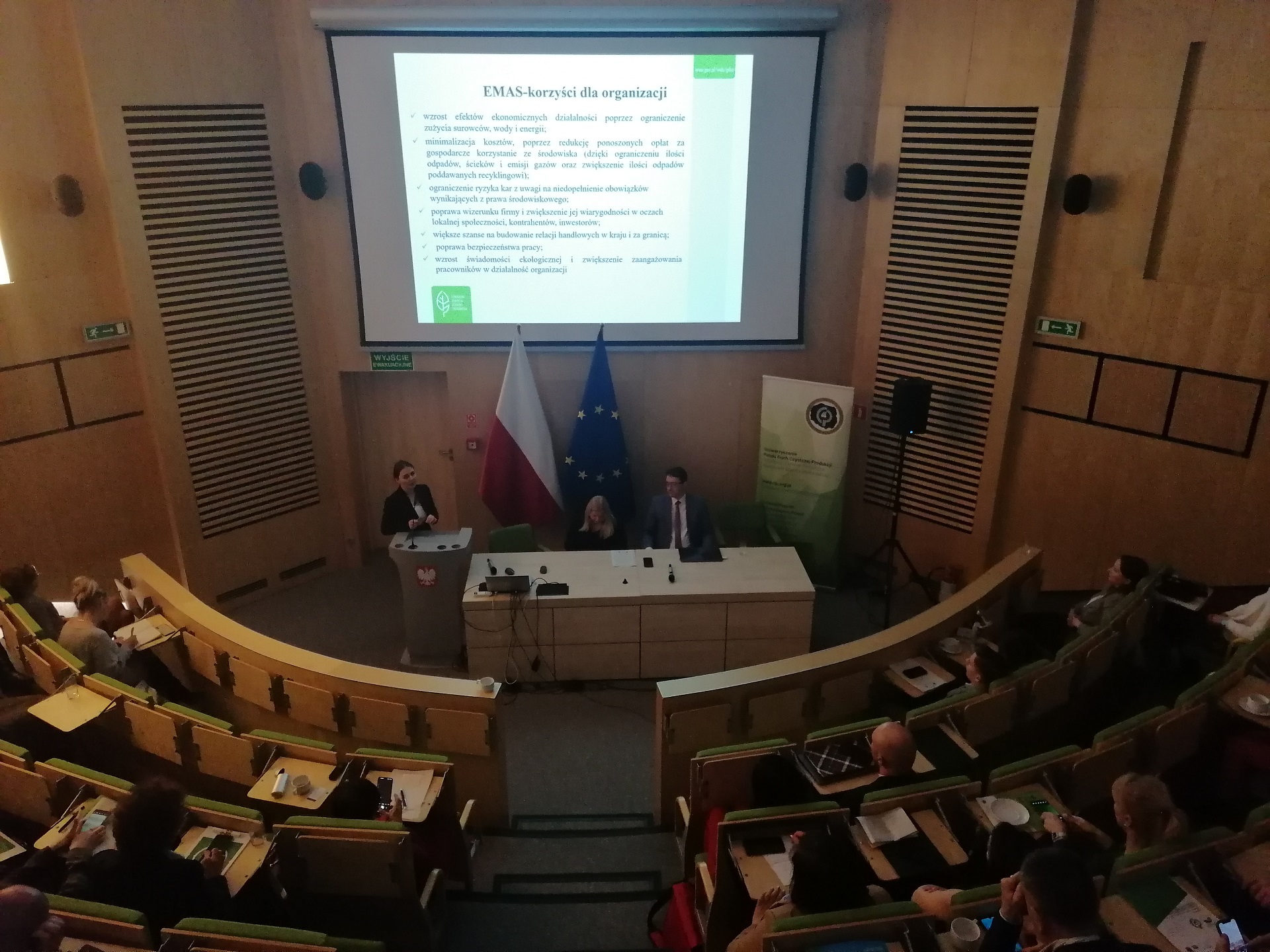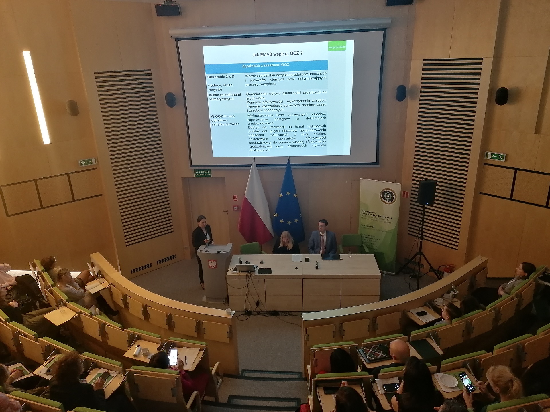 Uczestnicy konferencji wysłuchali m.in. wykładów na temat Gospodarki o Obiegu Zamkniętym w Polsce, oceny cyklu życia wyrobu (ang. LCA), analizy śladu węglowego w praktyce biznesowej oraz wprowadzenia do tematyki związanej z systemem EMAS przygotowanego przez dr inż. Agnieszkę Tomaszewską- pełnomocnika ds. EMAS w MKIŚ. Przedstawiciel GDOŚ, Monika Porębska wygłosiła prelekcję nt. roli EMAS we wspieraniu GOZ, w trakcie której na przykładach organizacji zarejestrowanych w EMAS zaprezentowane zostały możliwości praktycznego wykorzystania systemu zarządzania środowiskowego w odniesieniu do następujących kategorii: