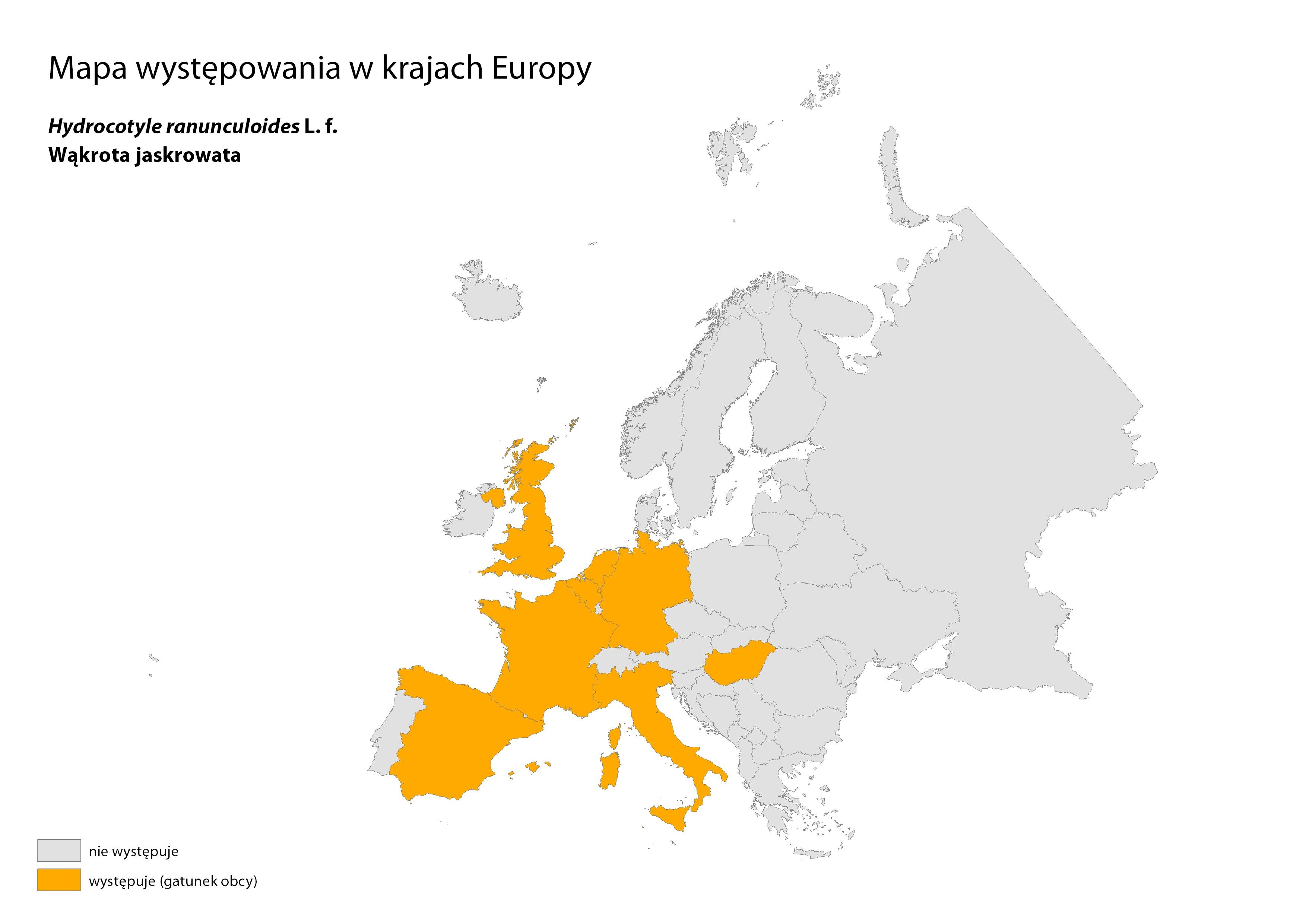 Hydrocotyle-ranunculoides_wakrotka-jaskrowata_DP.pdf 0.56MB Mapa występowania w krajach Europy - Hydrocotyle ranunculoides