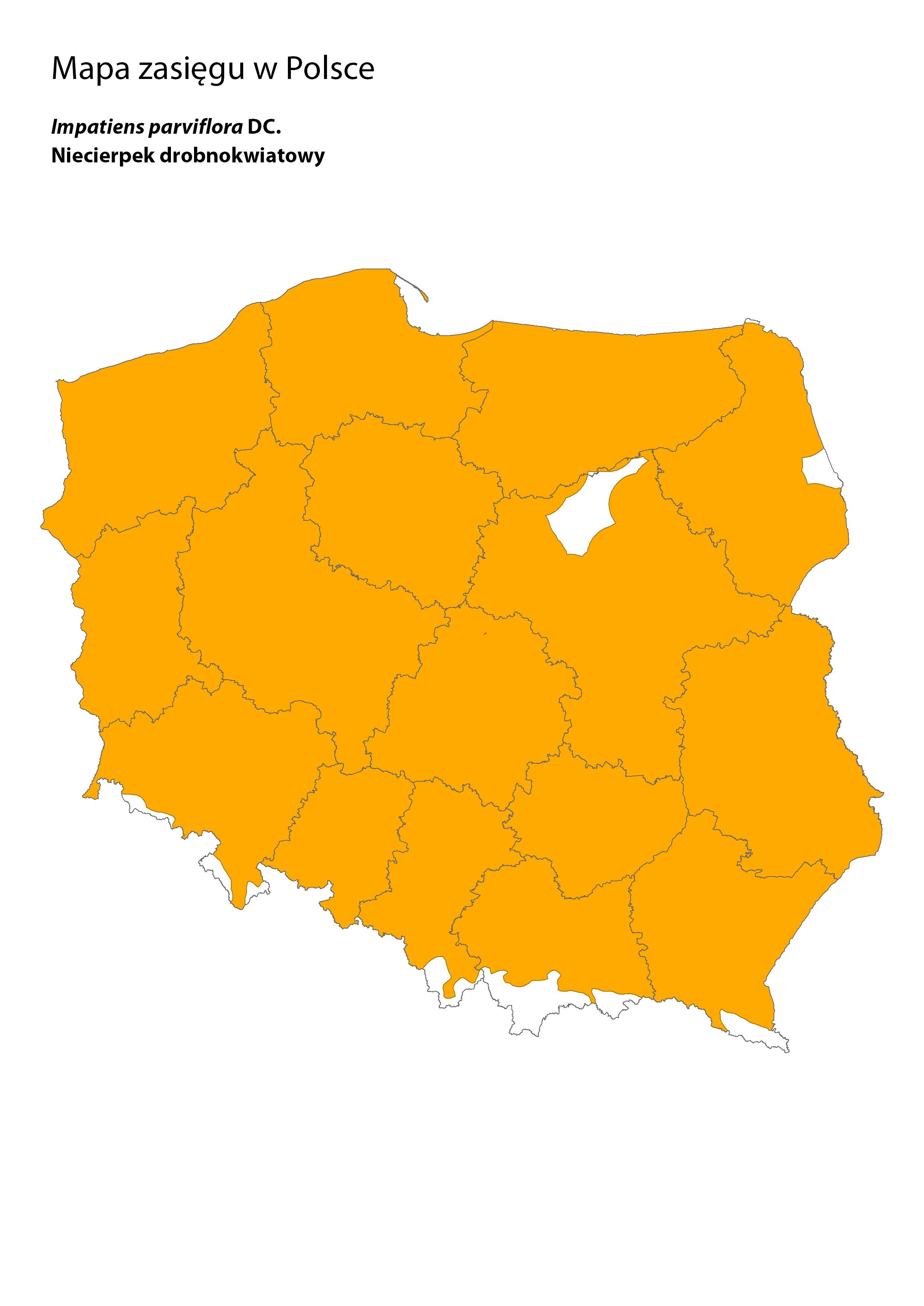 Impatiens-parviflora_niecierpek-drobnokwiatowy-EN.pdf 0.80MB Mapa zasięgu w Polsce - Impatiens parviflora