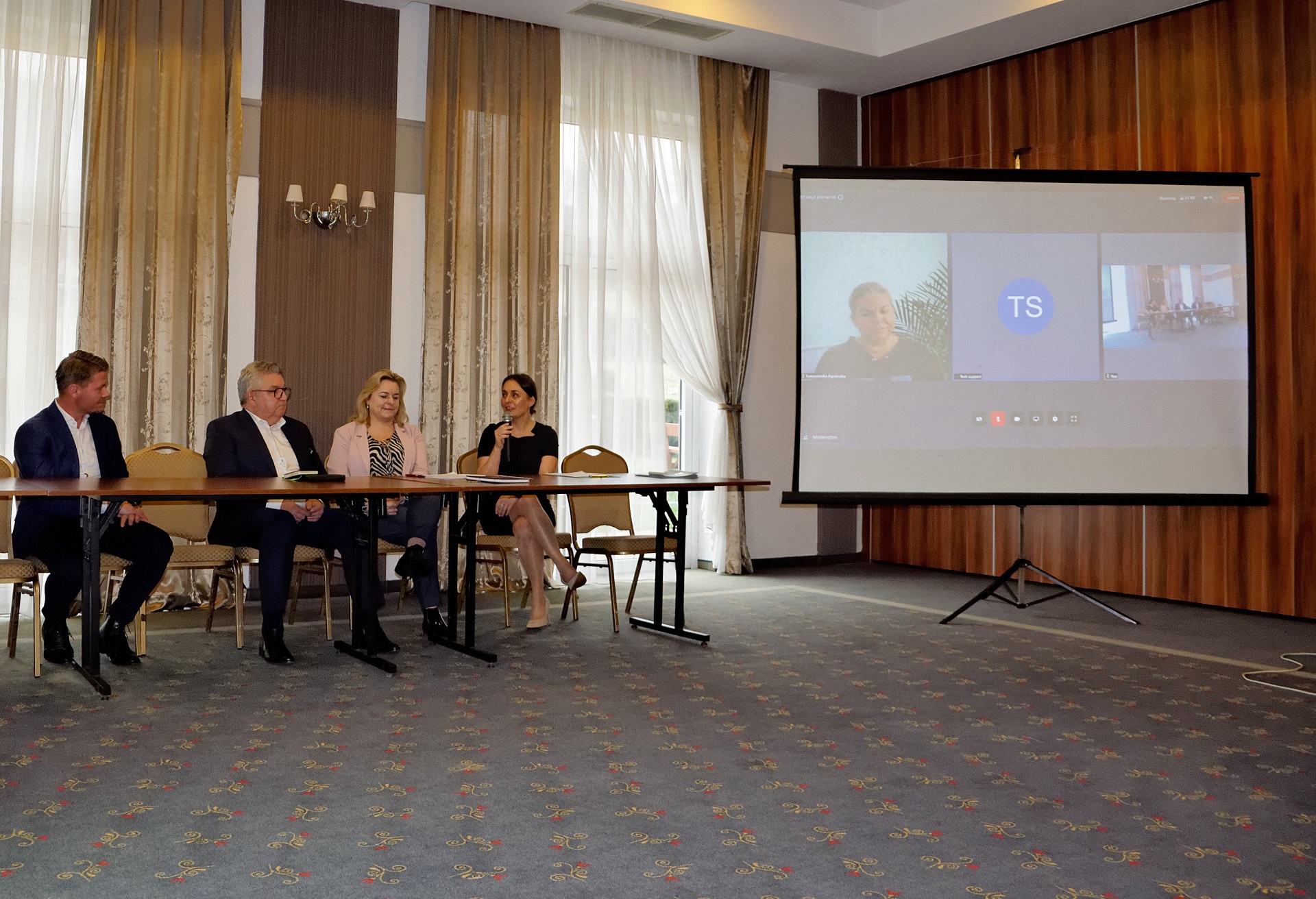 W panelu dyskusyjnym uzupełniającym prelekcję wzięli udział przedstawiciele organizacji zarejestrowanych w systemie: dr inż. Agnieszka Tomaszewska-pełnomocnik ds. systemu ekozarządzania i audytu EMAS w Ministerstwie Klimatu i Środowiska, Dariusz Gawlak – prezes zarządu Cementowni Warta S.A. Bartosz Wiśniewski – dyrektor pionu BHP w spółkach Erbud S.A. i ONDE S.A. oraz dr Alina Skorb-Gała – kierownik Wydziału ESG w Energa S.A.