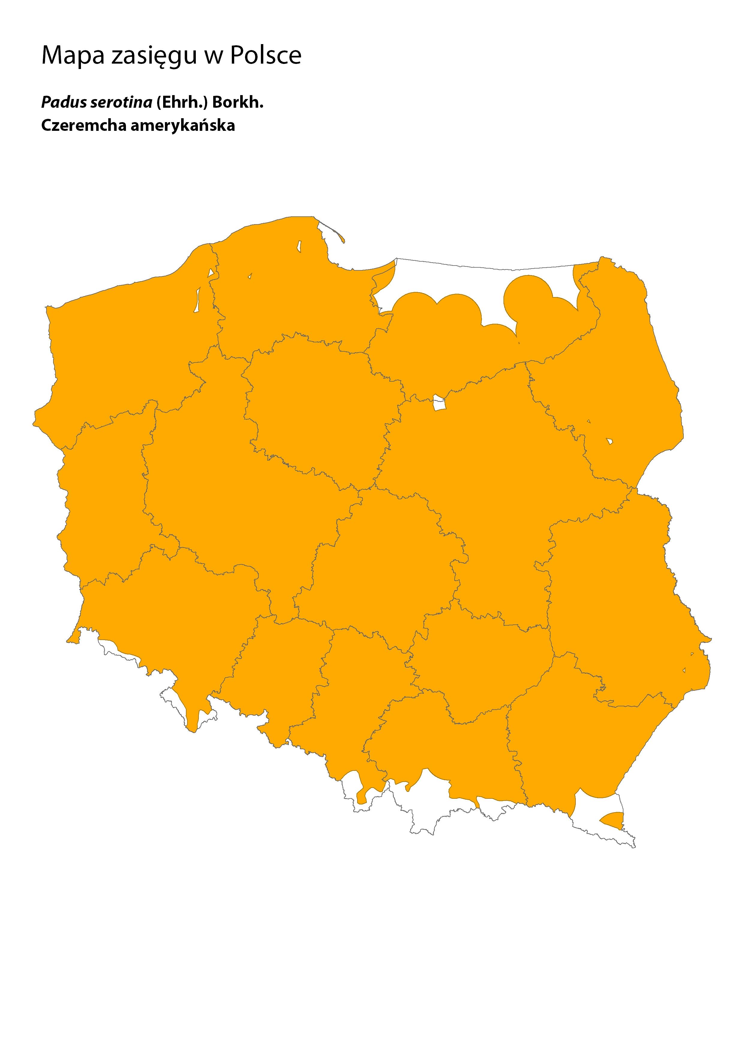 Padus-serotina_czeremcha-amerykanska_EN.pdf 0.84MB Mapa zasięgu w Polsce - Padus serotina