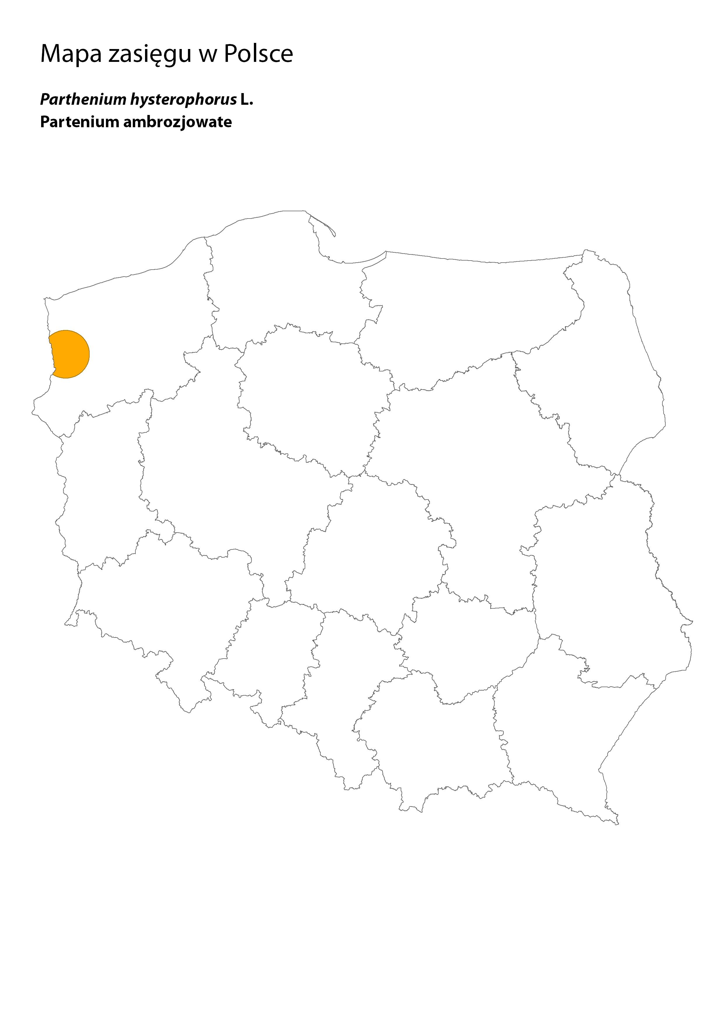 Parthenium-hysterophorus_partenium-ambrozjowate_DP.pdf 0.55MB Mapa zasięgu w Polsce - Parthenium hysterophorus