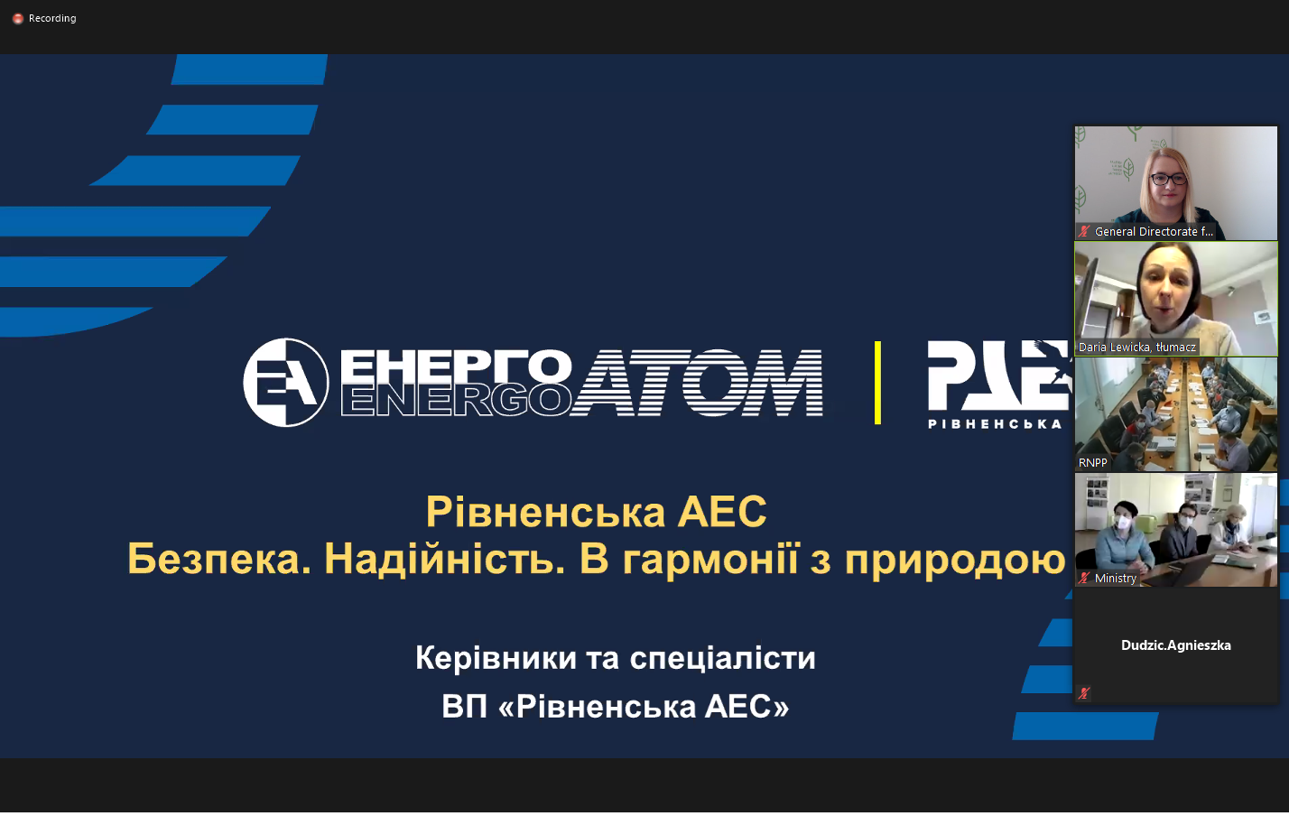 Strona ukraińska reprezentowana była przez przedstawicieli Ministerstwa Ochrony Środowiska i Zasobów Naturalnych oraz Krajowe Przedsiębiorstwo Energetyki Jądrowej „Energoatom”.