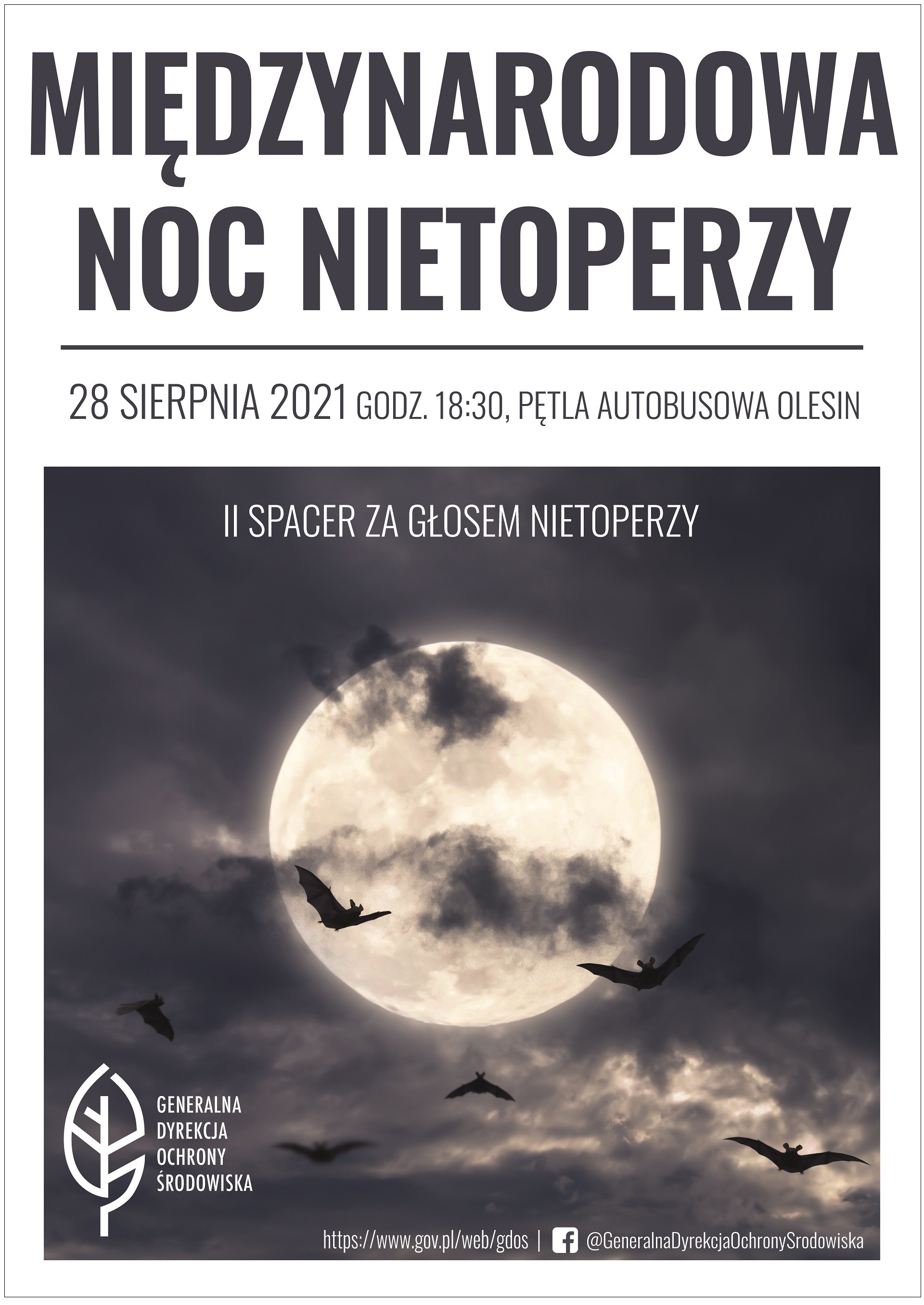Z okazji Międzynarodowej Nocy Nietoperzy, Generalna Dyrekcja Ochrony Środowiska zaprasza na spacer przyrodniczy.