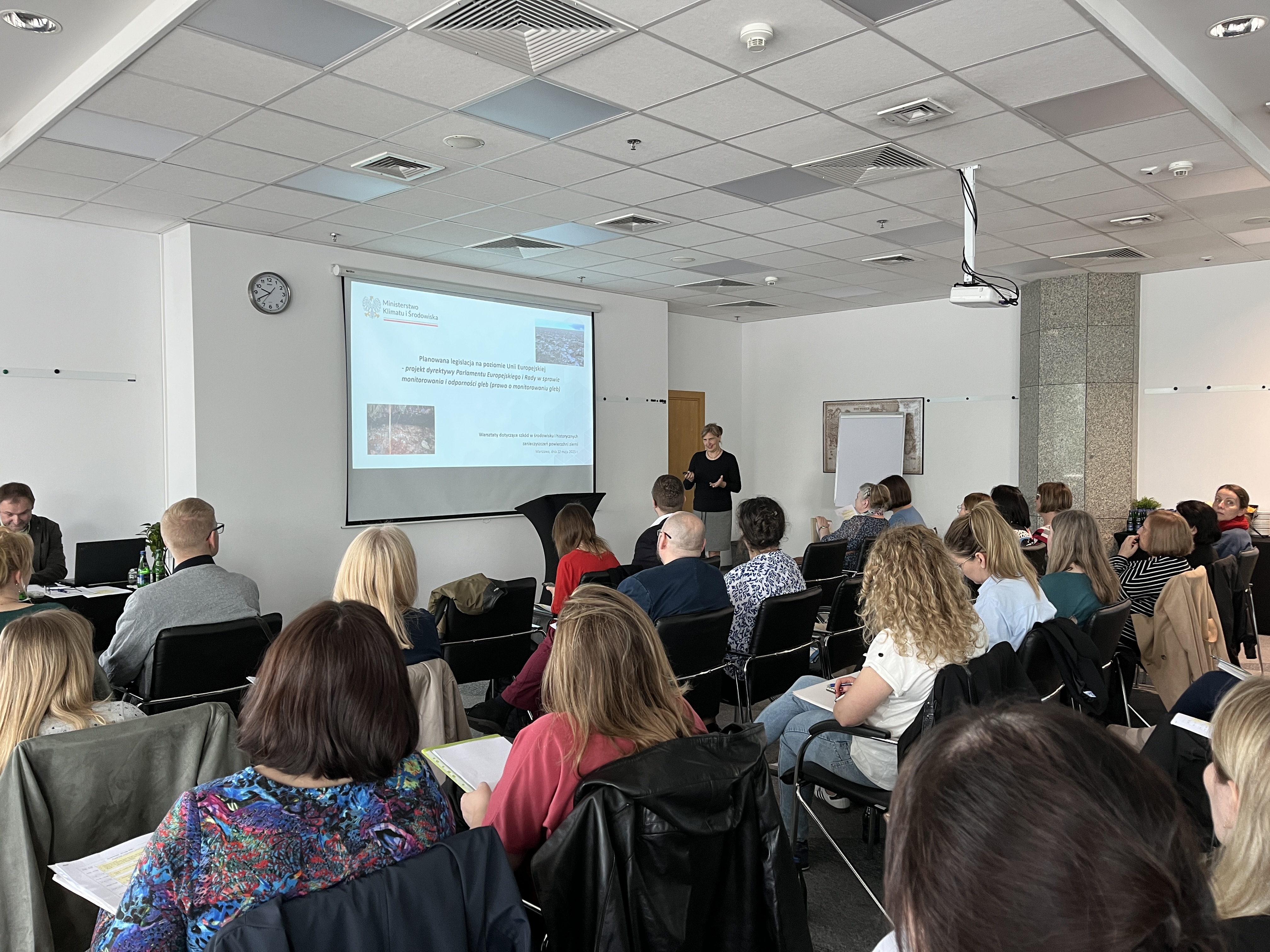 Spotkanie zainaugurował wykład połączony z prezentacją Ministerstwa Klimatu i Środowiska (MKiŚ) pn. „Dyrektywa w sprawie monitorowania i odporności gleb (SML) – projekt”.