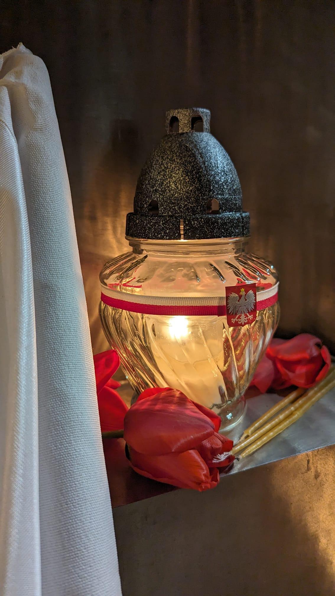 პოლონეთის რესპუბლიკის საელჩოს წარმომადგენლებმა დღეს 9 აპრილის მემორიალი შეამკეს ყვავილებით და სანთლები დაანთეს