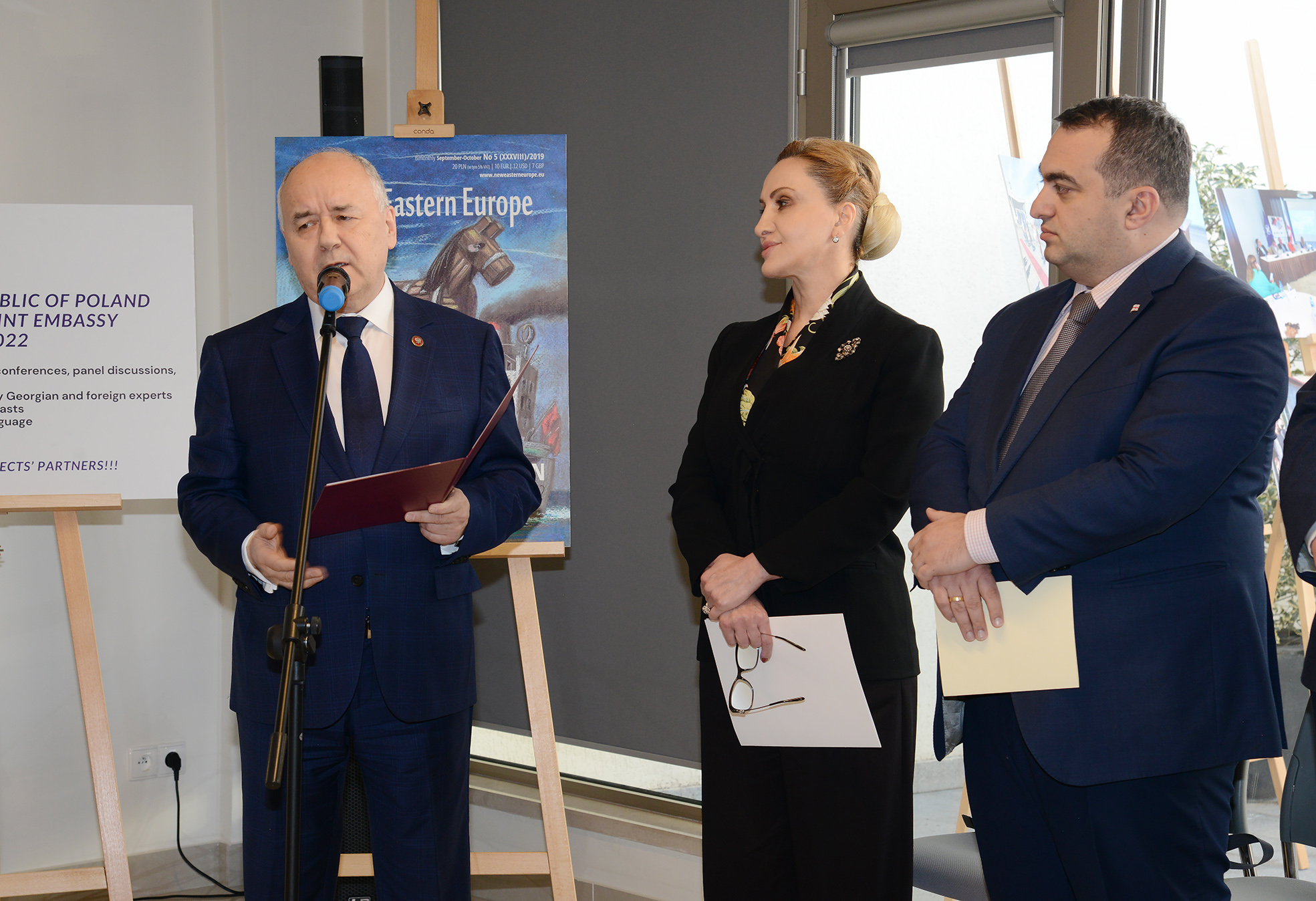The reception was honored by the presence of Deputy Foreign Minister of Georgia Lasha Darsalia, Deputy Defense Minister of Georgia Lela Chikovani, Head of NATO Liaison Office Alexander Vinnikov, Head of the Chancellery of the President of Georgia Natia Sulava, as well as ambassadors and representatives of European embassies and NATO, and our project partners representing Georgian think tanks, universities, and media.