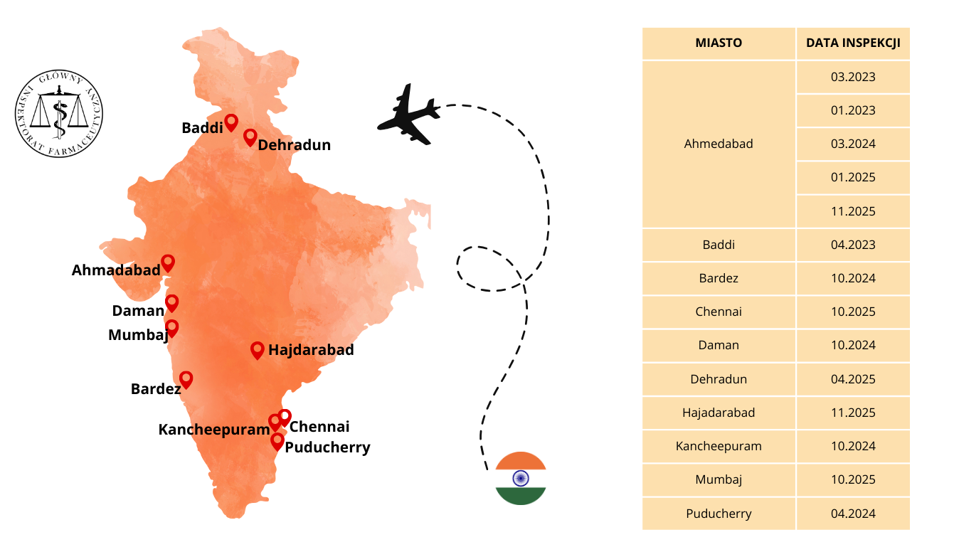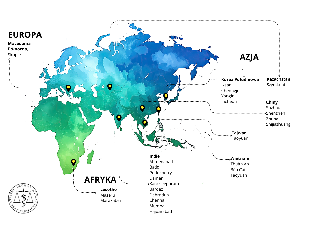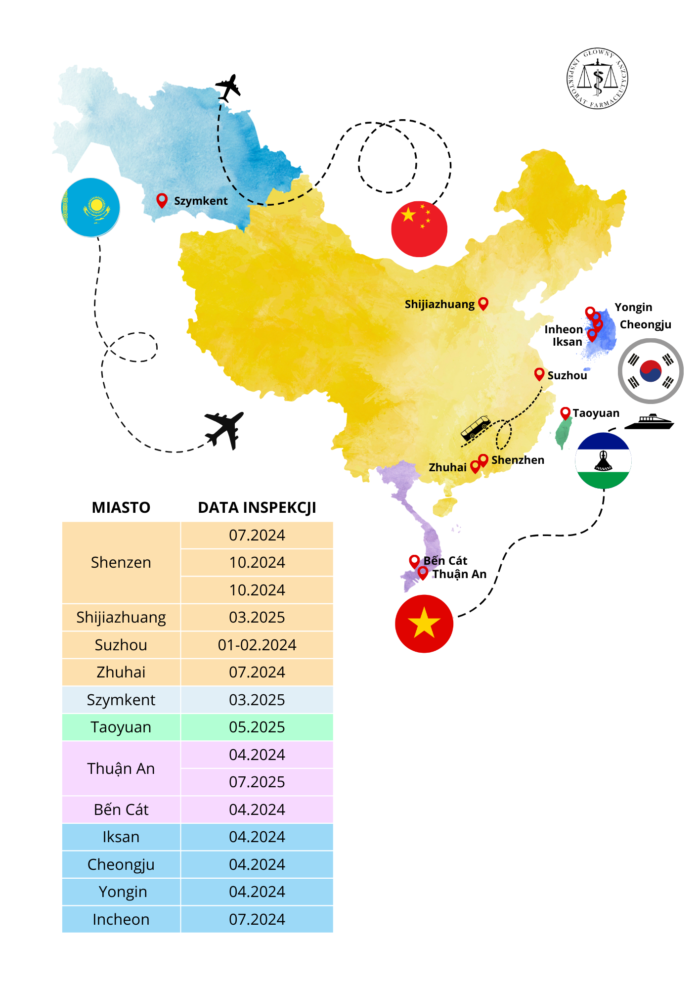 Sprawdzenie i potwierdzenie, że wytwórcy w krajach trzecich spełniają powyższe wymagania, ważne z punktu widzenia jakości, bezpieczeństwa i skuteczności produktów leczniczych jest jednym z zadań realizowanych przez GIF. Tylko w latach 2024-2025, w celu przeprowadzenia inspekcji w krajach trzecich, nasi inspektorzy ds. wytwarzania pokonali łącznie 370 tys. kilometrów, czyli odległość porównywalną do ponad 9-krotnego okrążenia Ziemi wzdłuż równika. Prowadzili w tym czasie inspekcje na 3 kontynentach, w 8 krajach, pokonując przy tym 7 stref czasowych.