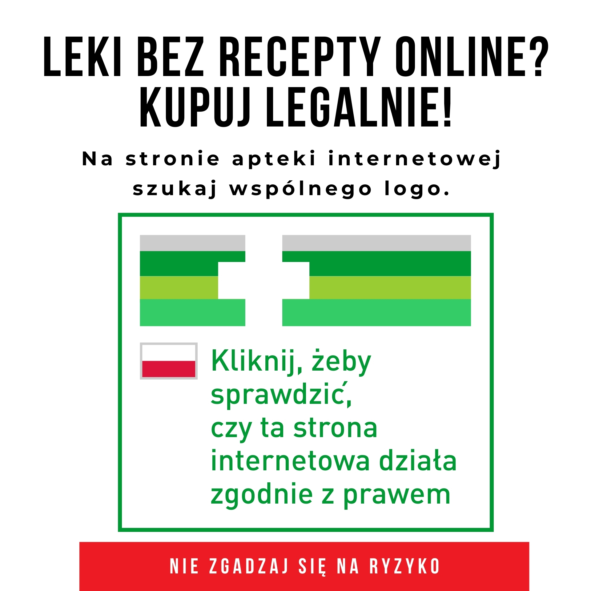 Jeśli witryna nie ma tego logo lub logo nie działa (nie przekierowuje do rejestru aptek) to najprawdopodobniej jest nielegalna i może oferować podrobione lub niebezpieczne produkty.