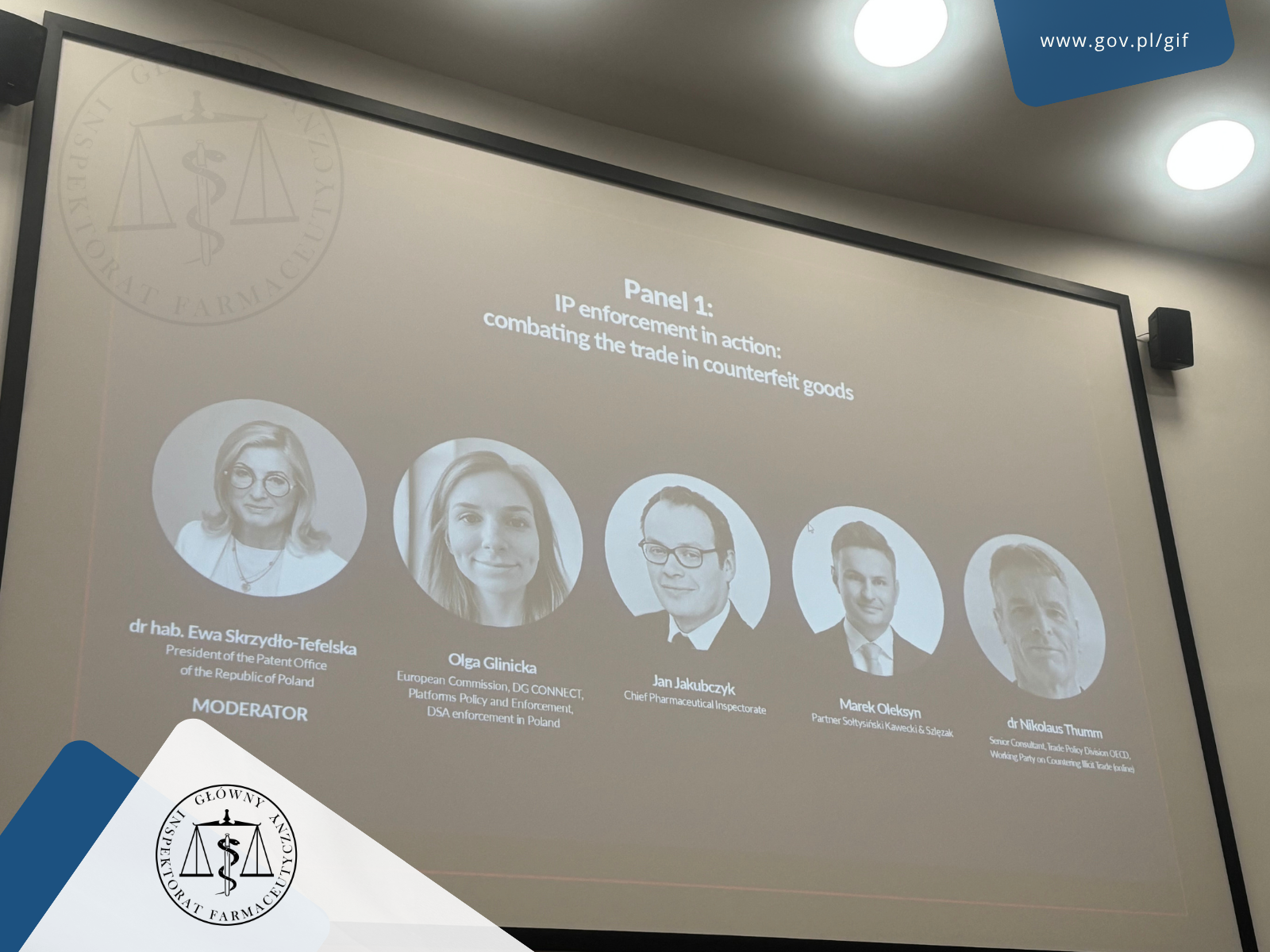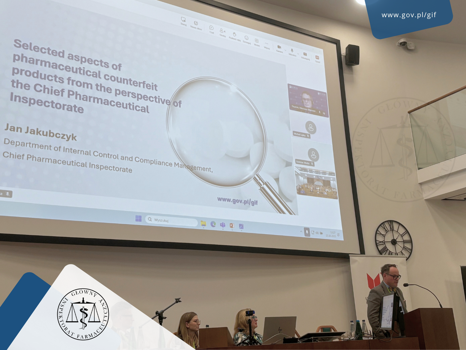 Podczas konferencji współorganizowanej przez Urząd Patentowy RP oraz Wydział Prawa i Administracji Uniwersytetu Jagiellońskiego dyrektor Departamentu Kontroli Wewnętrznej i Zarządzania Zgodnością GIF, Jan Jakubczyk, przedstawił problematykę obrotu sfałszowanymi produktami leczniczymi.