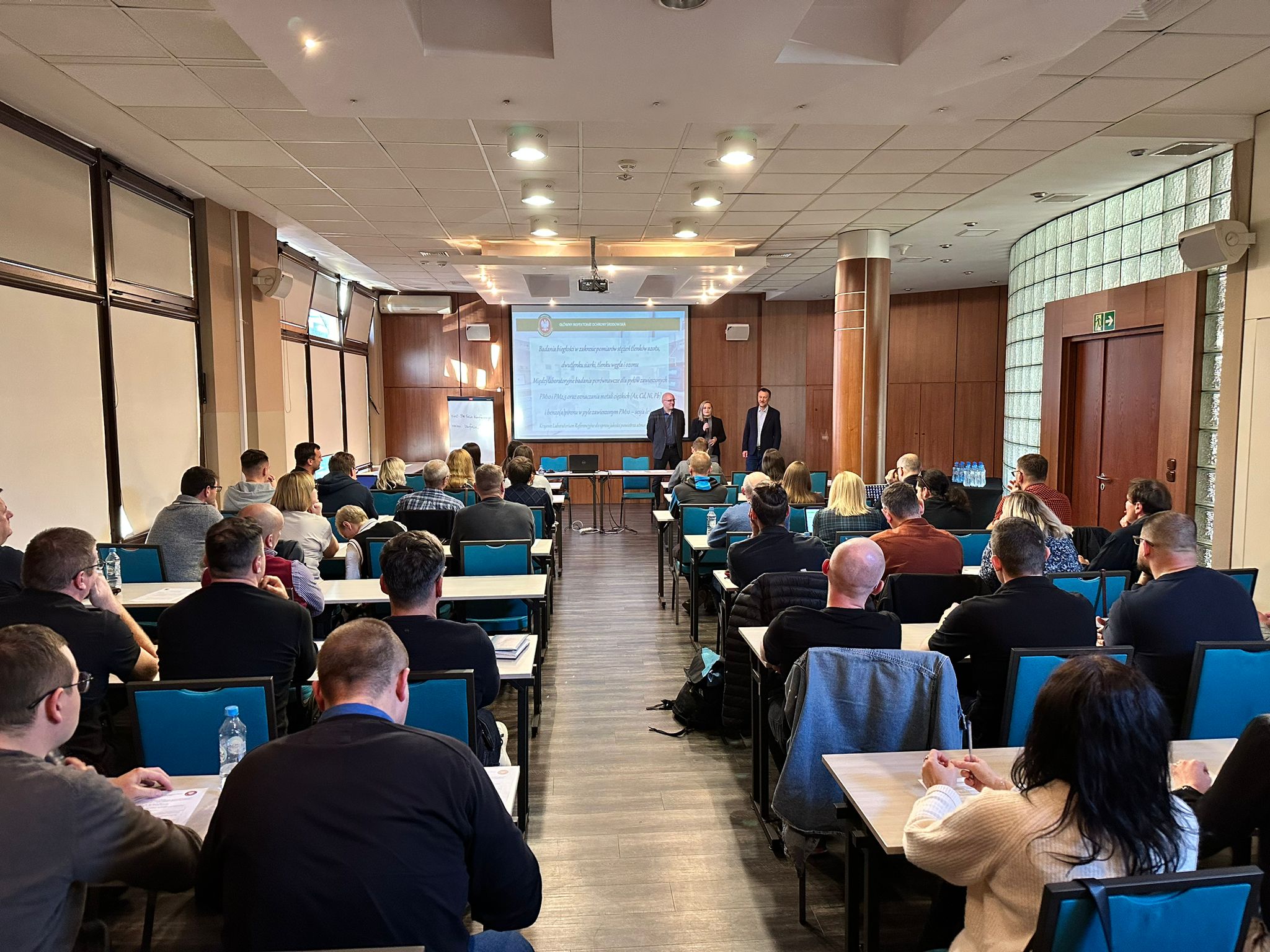 W dniach od 08 do 09 listopada 2022 roku w Warszawie odbyło się cykliczne szkolenie dla operatorów stacji monitoringu jakości powietrza. Organizatorem wydarzenia było Krajowe Laboratorium Referencyjne do spraw jakości powietrza atmosferycznego GIOŚ. Szkolenie skierowane było do pracowników wszystkich oddziałów Centralnego Laboratorium Badawczego, Departamentu Monitoringu Środowiska oraz do Regionalnych Wydziałów Monitoringu Środowiska. W szkoleniu uczestniczyli również przedstawiciele Instytutu Meteorologii i Gospodarki Wodnej oraz Instytutu Ochrony Środowiska – Państwowego Instytutu Badawczego oraz Instytutu Geofizyki Polskiej Akadami Nauk. Na sali obecnych było prawie sześćdziesięciu uczestników z całej Polski.