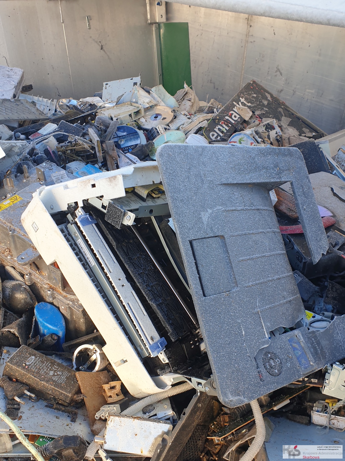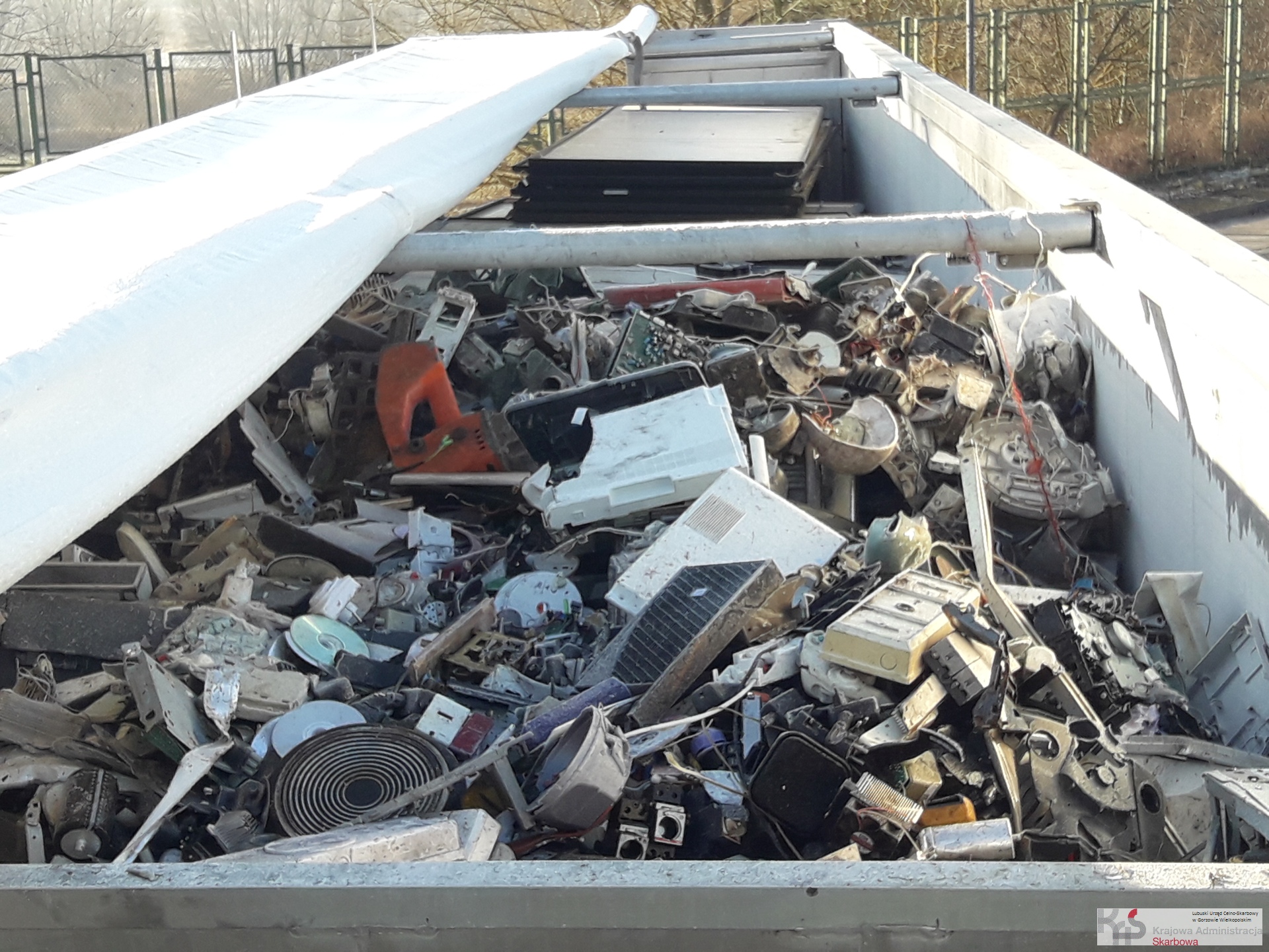 Wśród odpadów znalazły się różnego rodzaju płytki elektroniczne, obudowy sprzętu elektrycznego z tworzyw sztucznych i metali, gniazdka elektryczne, klawiatury komputerowe, kondensatory, płyty CD, odbiorniki radiowe.