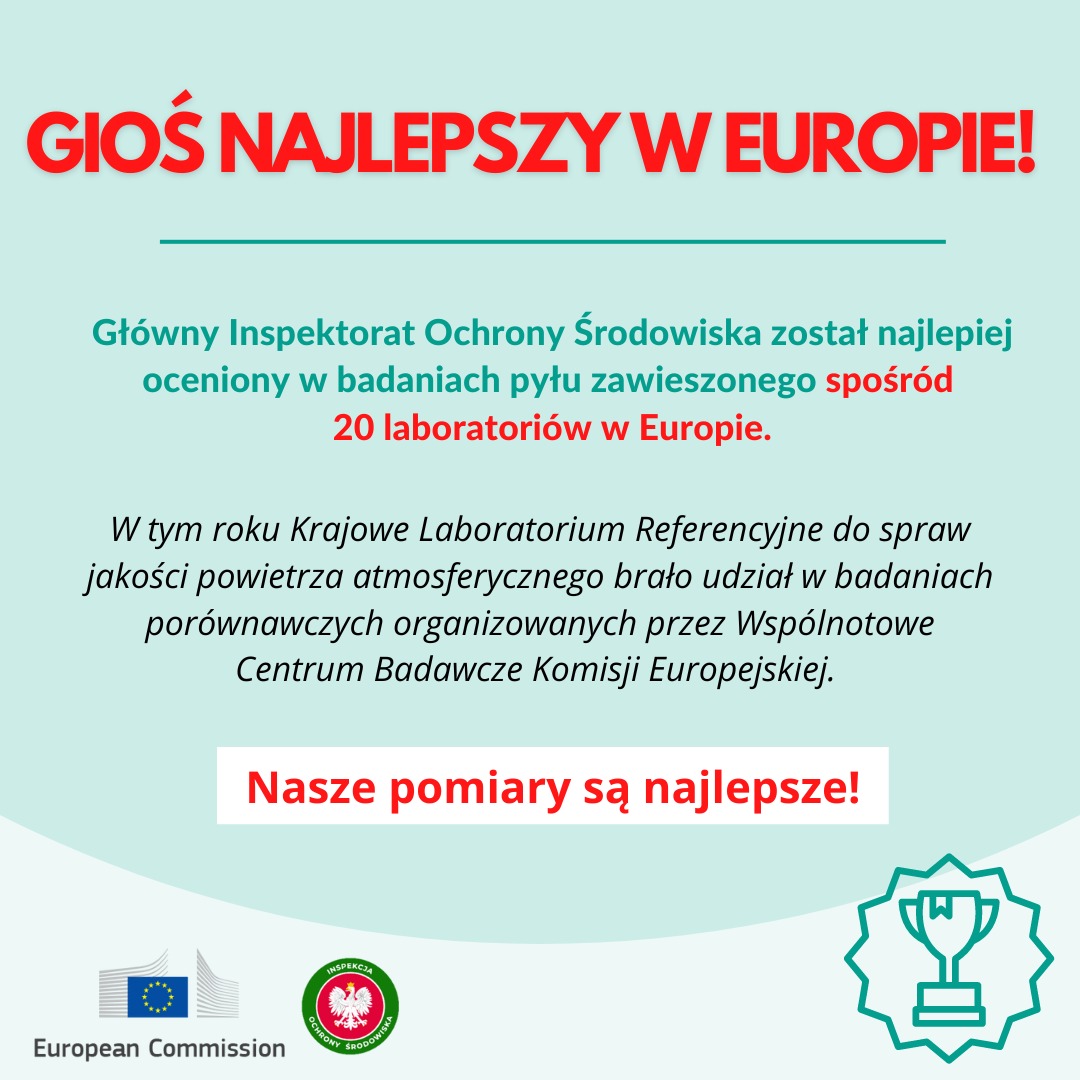 Główny Inspektorat Ochrony Środowiska został najlepiej oceniony w badaniach pyłu zawieszonego spośród 20 laboratoriów w Europie. To ocena fachowości osób pracujących codzienne nad wynikami, które trafiają na Portal Jakości Powietrza. Pochwała precyzyjności i poczucia profesjonalizmu pracy na rzecz społeczeństwa. Informacja, że dbamy o jak najdokładniejszą informację dotyczącą czystości otaczającego nas powietrza.