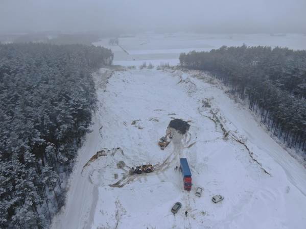 Dzięki sprawnym działaniom Inspektorów DZPŚ, WIOŚ oraz Policji, w dniu 2 lutego około godz. 6 rano, na terenie żwirowni o powierzchni prawie 2 ha, zatrzymano kierowcę, który przywiózł na działkę w gm. Szumowo prawie 20 ton odpadów komunalnych. Łącznie na miejscu zatrzymano 5 osób. Działania wspierał Zespół Stosowania Techniki Specjalnej DZPŚ GIOŚ.