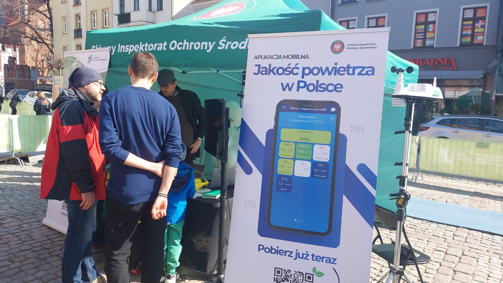 Przygotowaliśmy atrakcje dla dorosłych i dzieci, mające na celu budowanie świadomości wpływu jakości środowiska na dobrostan osobisty i społeczny m.in. pomiar stężenia pyłów zanieczyszczających powietrze, pomiar hałasu, badania czystości wody w kujawskich jeziorach. Uczestnicy wydarzenia wraz z inspektorami mieli możliwość bezpośredniego sprawdzenia parametrów otoczenia występujących na toruńskim rynku, ale także z chęcią pobierali aplikację mobilną Jakość powietrza w Polsce, aby do teraz zawsze być na bieżąco z informacjami o stanie powietrza w ich okolicy.