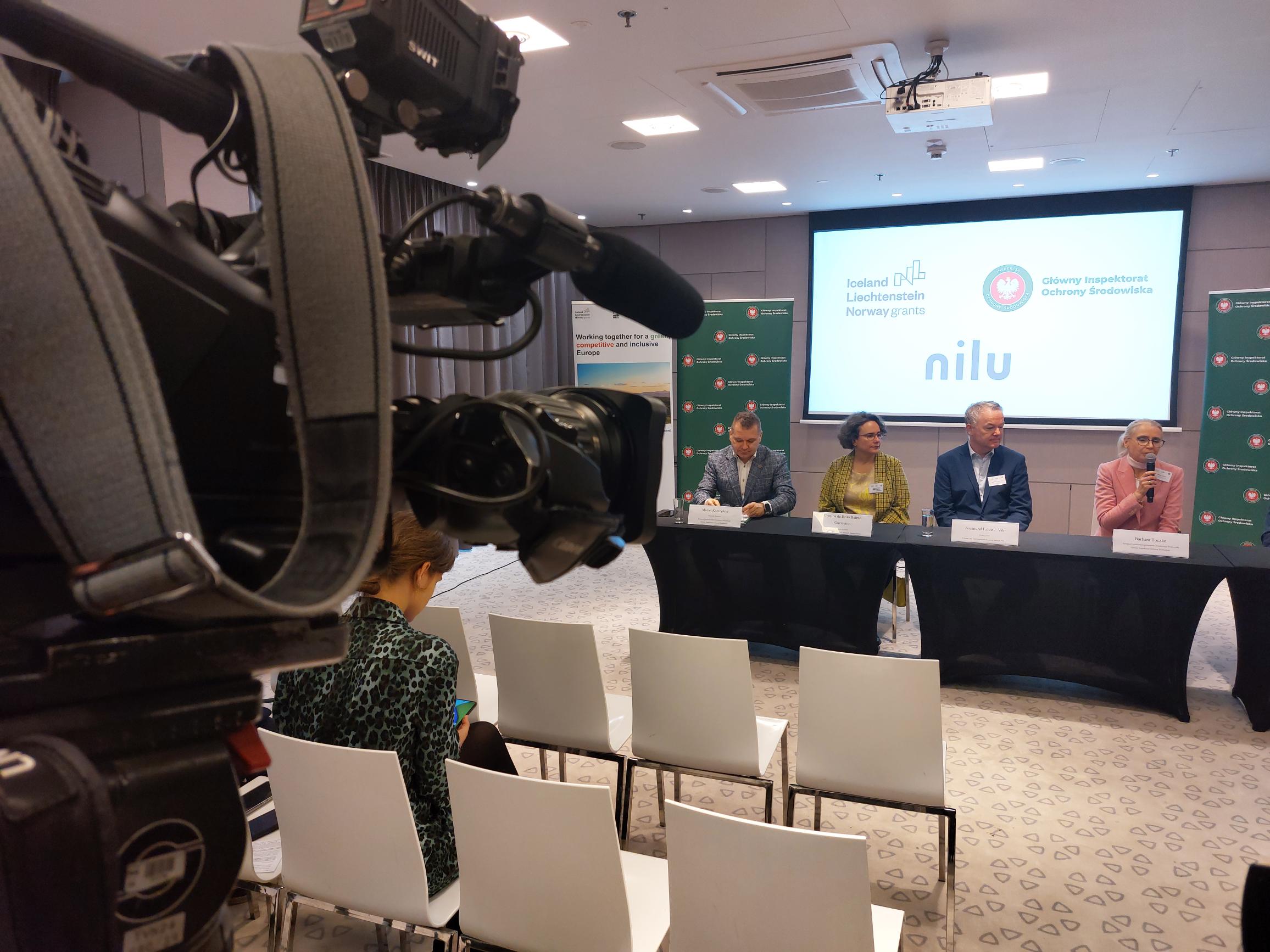Przed rozpoczęciem konferencji naukowej w godz. 10.30-11.00 odbyła się również konferencja prasowa z udziałem Barbary Toczko – Kierownika Projektu i Zastępcy Dyrektora Departamentu Monitoringu Środowiska Głównego Inspektoratu Ochrony Środowiska , Piotra Bogusza – Zastępcy Dyrektora Departamentu Funduszy Europejskich Ministerstwa Klimatu i Środowiska, Aasmunda Fahre J. Vika – Dyrektora Generalnego Instytutu Badań Klimatu i Środowiska NILU oraz Cristiny de Brito Beirao Guerreiro – Dyrektora ds. naukowych Instytutu Badań Klimatu i Środowiska NILU.