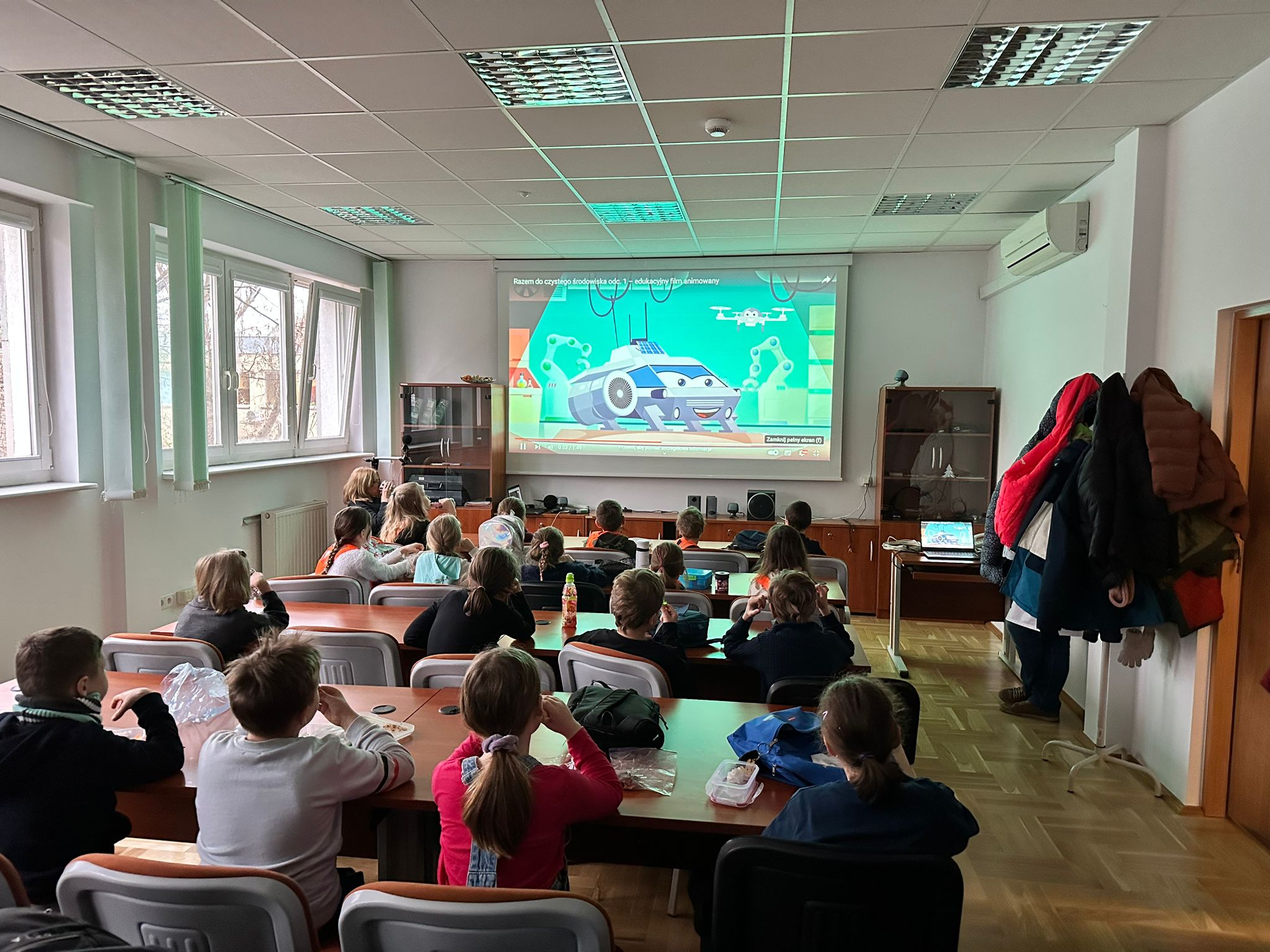 Po wyjściu z laboratorium czekała na nich kolejna niespodzianka…obejrzały specjalnie na tę okazje przygotowany, widowiskowy pokaz dronów wykorzystywanych na co dzień do tropienia i zwalczania przestępczości środowiskowej!