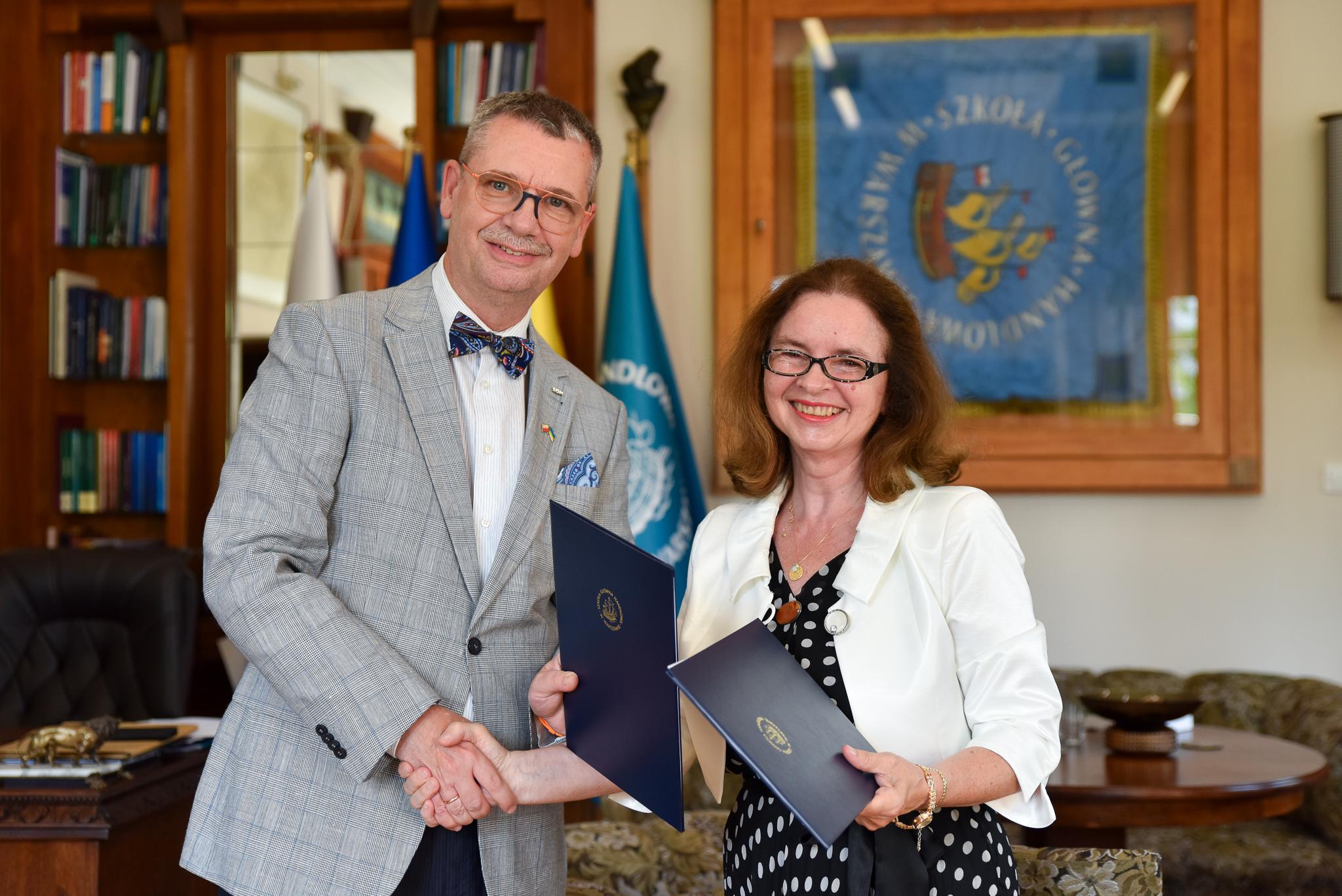 W dniu 7 sierpnia 2024 r. Główny Inspektor Ochrony Środowiska Joanna Piekutowska podpisała porozumienie o współpracy z Rektorem Szkoły Głównej Handlowej w Warszawie dr. hab. Piotrem Wachowiakiem prof. SGH w celu promowania właściwych postaw środowiskowych i społecznych w prowadzeniu działalności biznesowej, wymiany wiedzy i doświadczeń, zwiększenia dostępności wiedzy z zakresu ochrony środowiska, zrównoważonego rozwoju oraz jej popularyzacji wśród studentów SGH w zakresie dotyczącym Inspekcji Ochrony Środowiska. W podpisaniu porozumienia uczestniczył I Zastępca GIOŚ – Pani Anna Dębowiec.