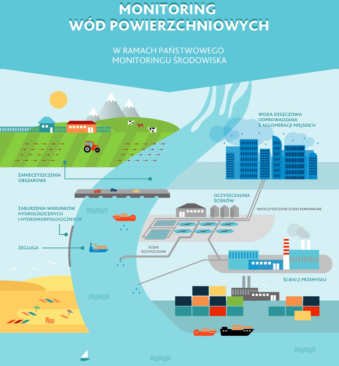 - koordynuje działania w zakresie monitoringu wód powierzchniowych,