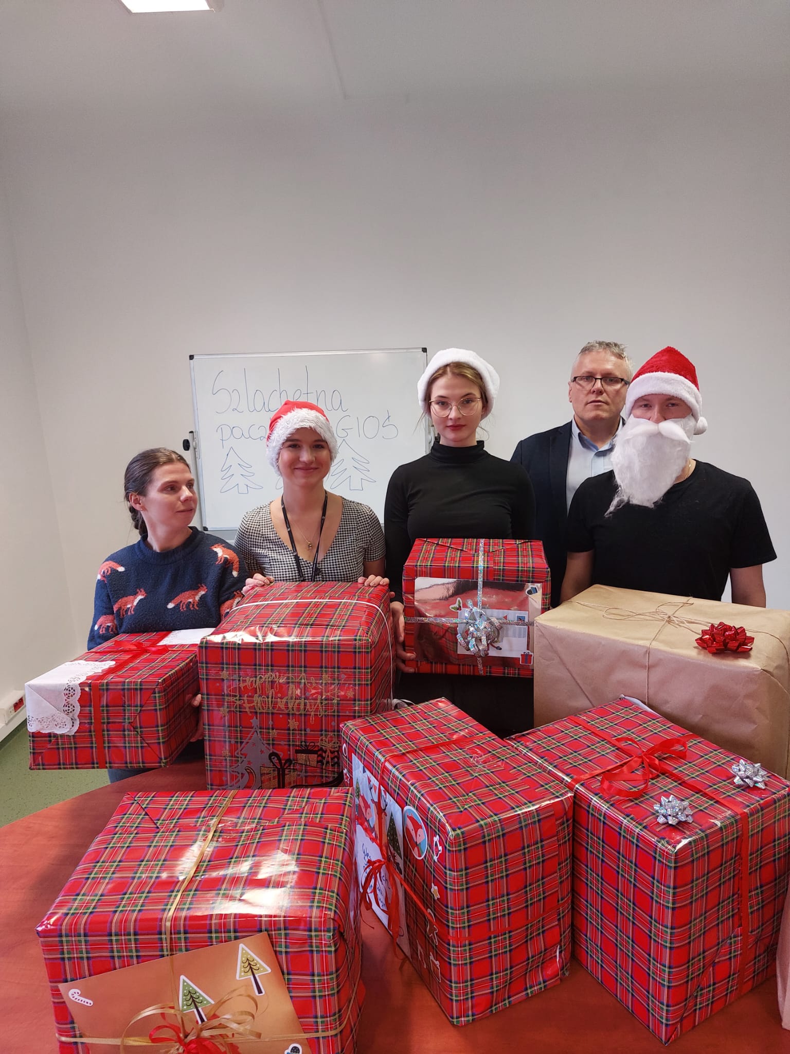 Pani Agata wymieniła na liście potrzeb rodziny: produkty żywnościowe, artykuły chemiczne oraz laptopa z myślą o dalszym kształceniu. Po lekturze listy życzeń wszyscy pracownicy przystąpili do realizacji szlachetnego zadania! Przedstawiciele Zespołu Promocji i Komunikacji GIOŚ przeprowadzili dobrowolną zbiórkę pieniężną, w celu zgromadzenia potrzebnych środków. Pieniądze zostały wydane na zakup laptopa z pełnym pakietem programów startowych oraz na voucher rehabilitacyjny. Pracownicy GIOŚ z zapałem tworzyli paczki wypełnione po brzegi produktami żywnościowymi, książkami, grami dla dzieci i innymi super upominkami!