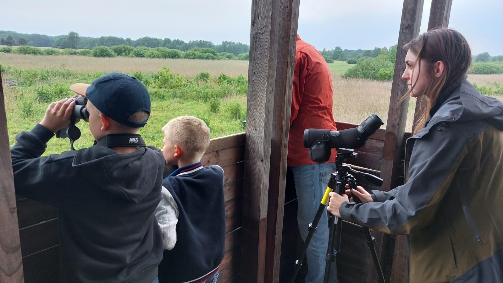 Ostatnim, ale jakże ważnym punktem spotkania była obserwacja ptaków podczas spaceru na jednej ze ścieżek edukacyjnych w Kampinoskim Parku Narodowym, gdzie przy użyciu lunety i lornetek nasza dzielna grupa odkrywała sekretne życie zwierząt oraz próbowała rozpoznać ptasie głosy np.: kukułki, dzięcioła czy kopciuszka.