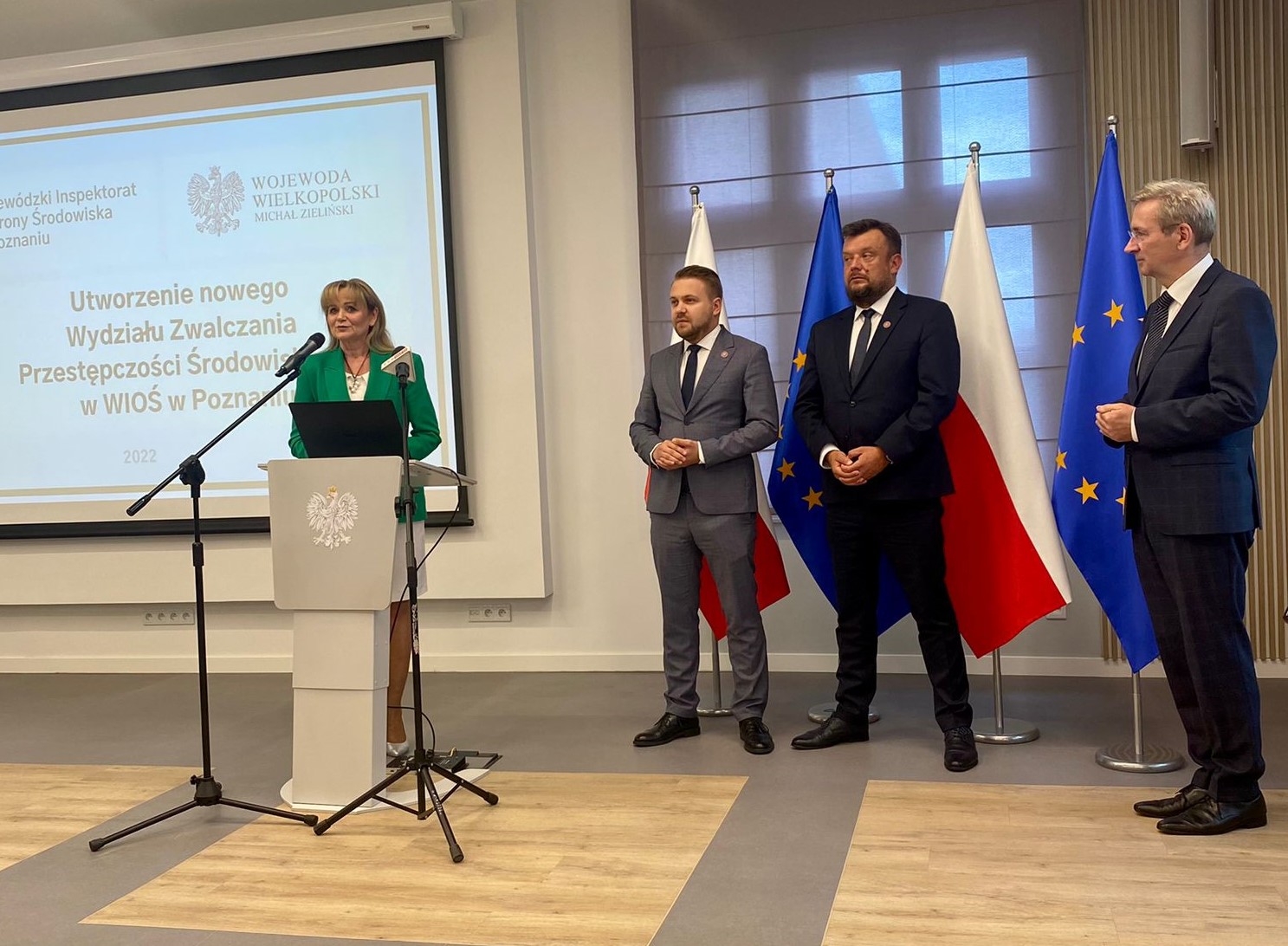 Dzięki inicjatywie Ministra Klimatu i Środowiska oraz wsparciu Głównego Inspektora Ochrony Środowiska powołanie Wydziału Zwalczania Przestępczości Środowiskowej w WIOŚ w Poznaniu przyczyni się do zwiększenia skuteczności działań Inspekcji w obszarze wykrywalności przestępstw przeciwko środowisku.