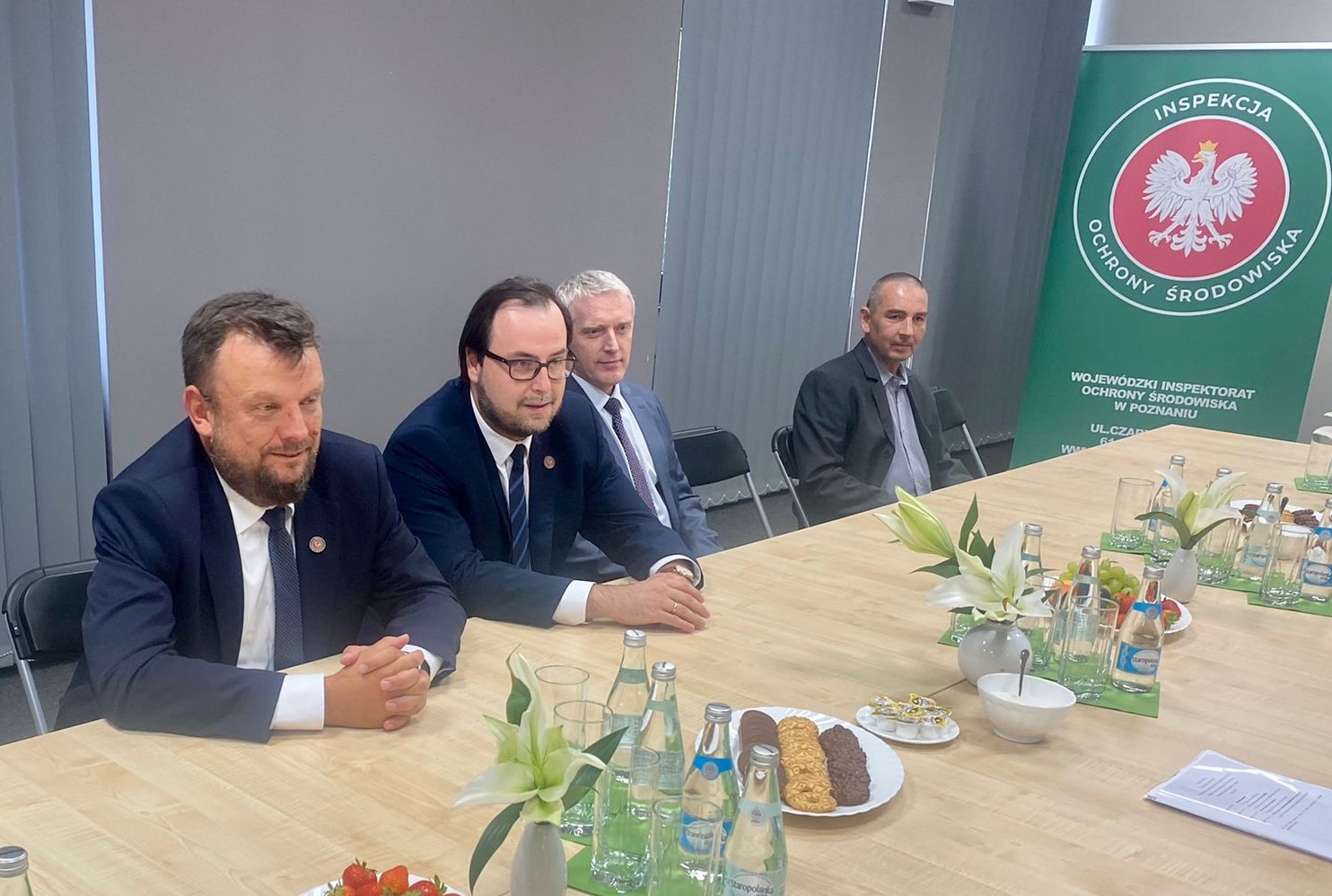 Po konferencji prasowej, Minister Michał Mistrzak odwiedził Wielkopolski Inspektorat Ochrony Środowiska, gdzie spotkał się z pracownikami oraz omówił bieżące tematy i działania Inspekcji.