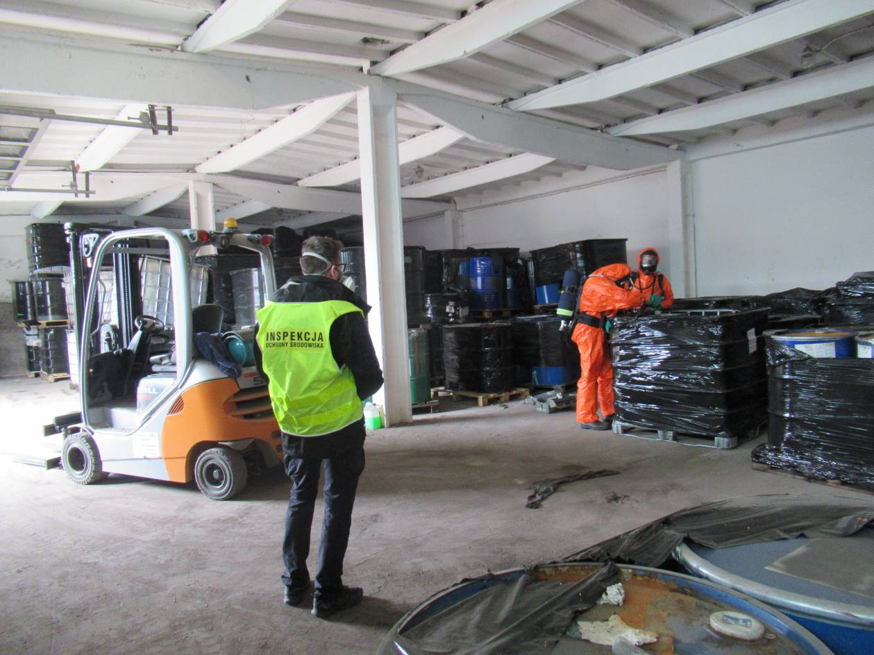 na których znajdowały się pojemniki z odpadami typu mauzer oraz beczki metalowe. Podczas przeprowadzonych działań na miejsce zostały zadysponowane jednostki Państwowej Straży Pożarnej, które na zlecenie Policji pobrały próbki odpadów do analizy. Ponadto na miejsce wezwano przedstawicieli Inspekcji Transportu Drogowego oraz Krajową Administrację Skarbową.