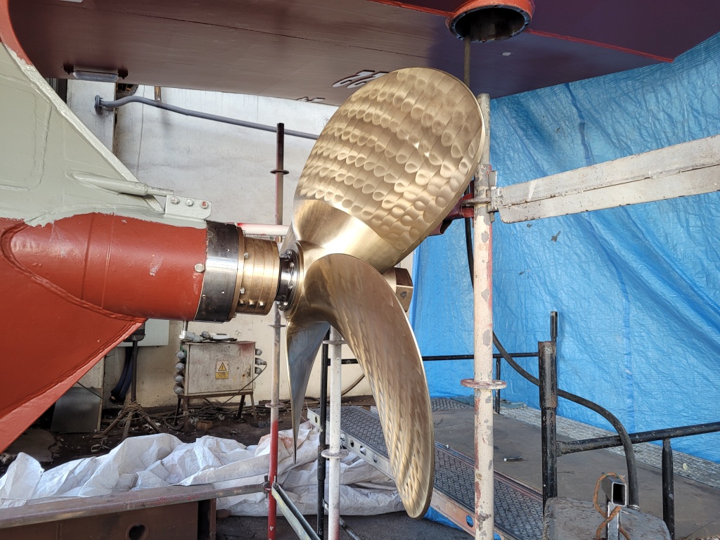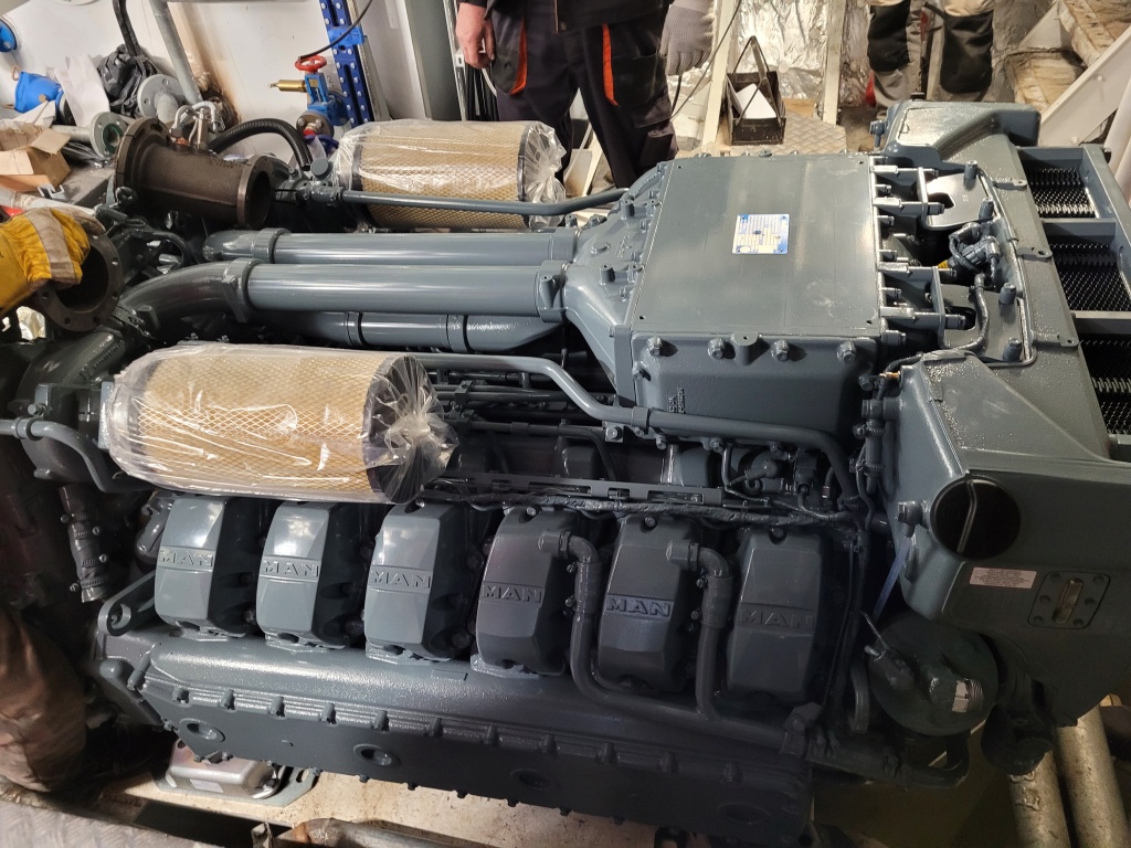 Główny Inspektorat Rybołówstwa Morskiego informuje o zakończeniu etapu III na pierwszym statku, polegającego na wyposażeniu kadłuba statku w zespół napędowy.