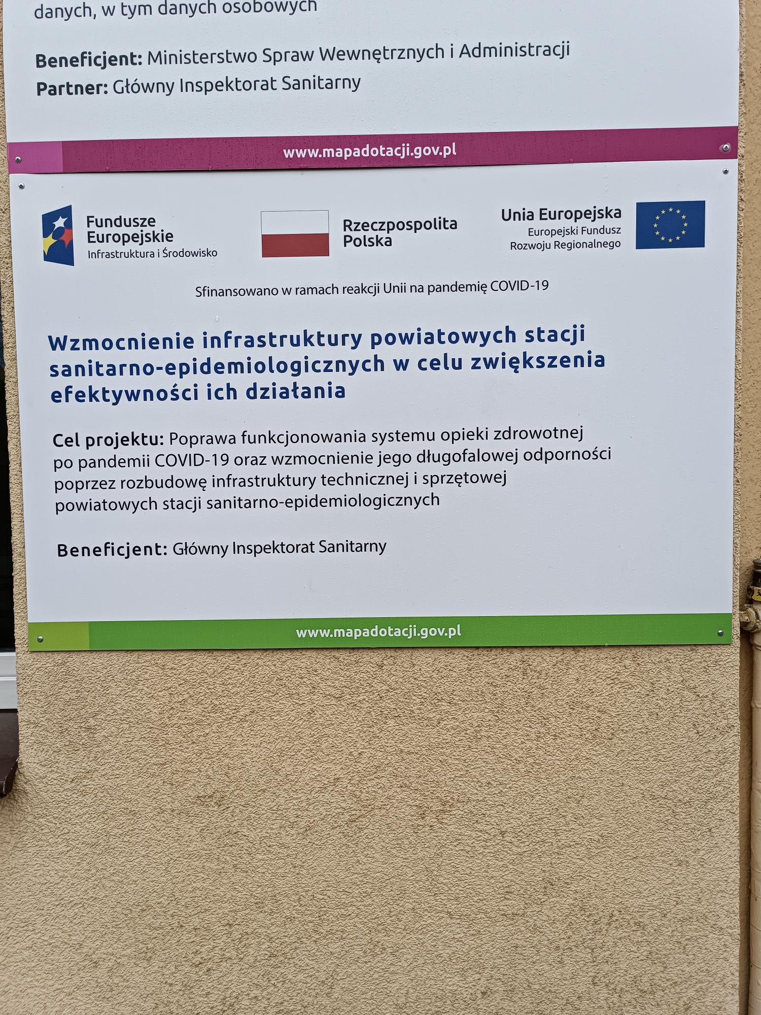 Projekt "Wzmocnienie infrastruktury powiatowych stacji sanitarno–epidemiologicznych w celu zwiększenia efektywności ich działania" nabiera tempa. Kolejne powiatowe stacje sanitarno-epidemiologiczne zmieniają swoje oblicza. Dzięki pozyskanym środkom zyskują możliwość lepszego dbania o zdrowie publiczne, a jednocześnie poprawiają komfort pracy zatrudnionych w nich osób.