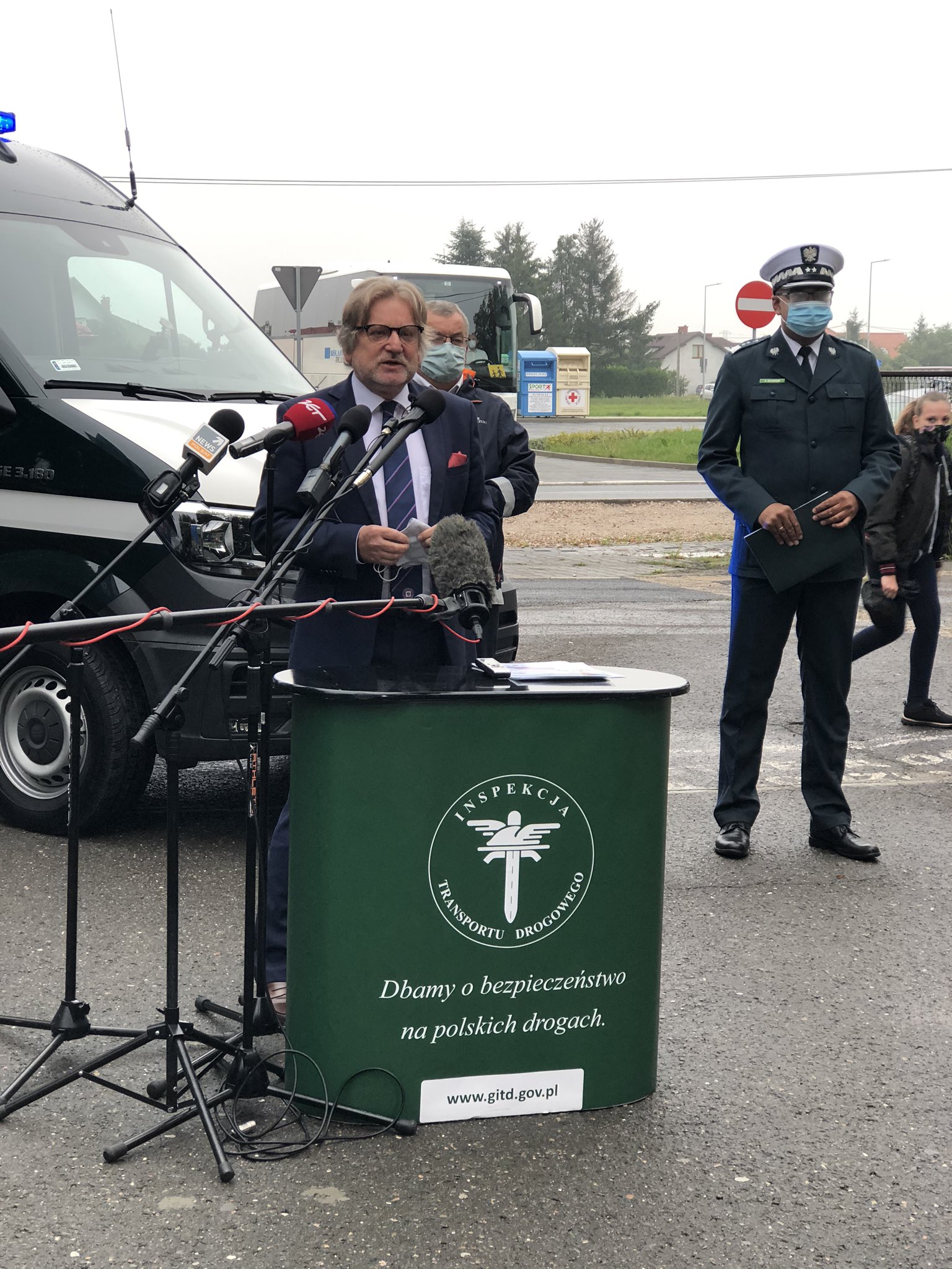 Wraz z pierwszym szkolnym dzwonkiem ruszają kontrole autobusów szkolnych prowadzone przez Inspekcję Transportu Drogowego. Na jakie aspekty bezpieczeństwa należy zwracać uwagę w trakcie przewozu dzieci do szkół? Na te i inne pytania odpowiadali dziś Andrzej Adamczyk Minister Infrastruktury, Alvin Gajadhur Główny Inspektor Transportu Drogowego i Jarosław Pinkas Główny Inspektor Sanitarny. Konferencja odbyła się w Szkole Podstawowej w Lesznowoli.