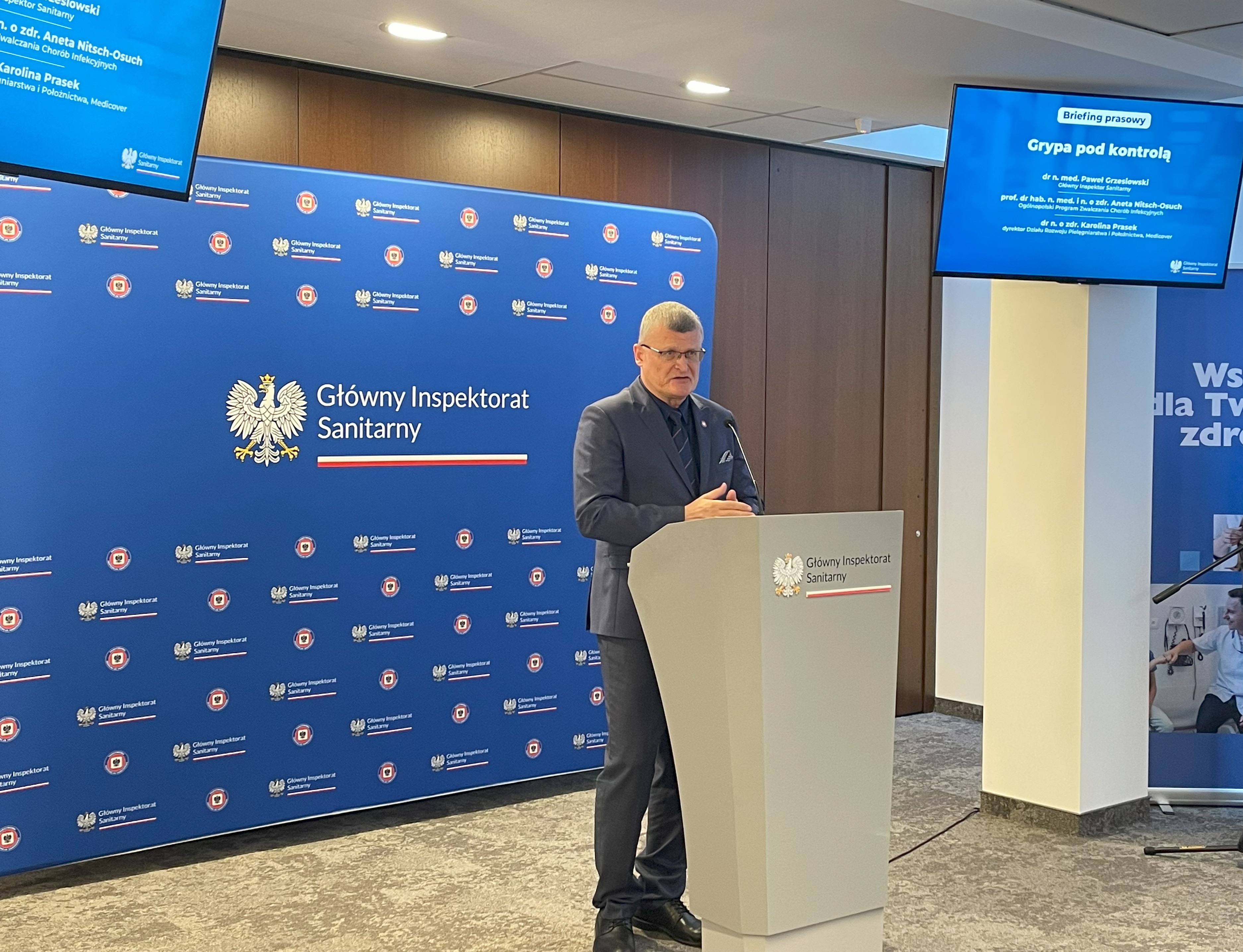 1 października to Ogólnopolski Dzień Profilaktyki Grypy. Przy tej okazji w Głównym Inspektoracie Sanitarnym odbył się briefing prasowy „Grypa pod kontrolą” z udziałem dr. n. med. Pawła Grzesiowskiego, Głównego Inspektora Sanitarnego, prof. dr hab. n. med. i n. o zdr. Anety Nitsch-Osuch, przedstawicielki Ogólnopolskiego Programu Zwalczania Chorób Infekcyjnych, i dr n. o zdr. Karoliny Prasek, dyrektora Działu Rozwoju Pielęgniarstwa i Położnictwa Medicover. Jednocześnie pracownicy GIS mogli poddać się szczepieniu przeciw grypie. Zaszczepiony został m. in. Główny Inspektor Sanitarny.